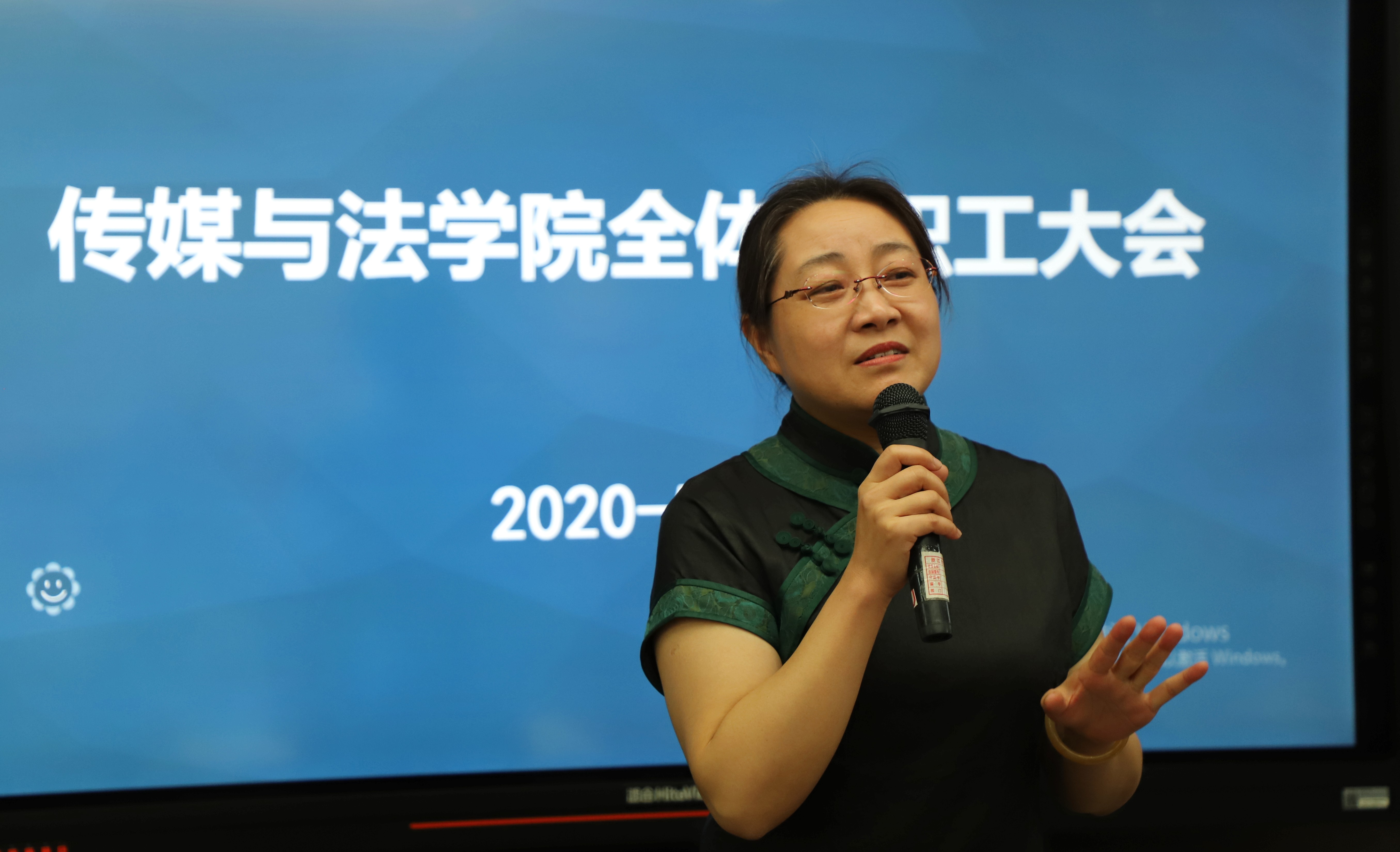 随后,经理吴飞教授从院系结构、教师队伍、团队建设、专业建设和党建思政等方面介绍了新公司的情况。吴经理以自己在新闻传播法领域的研究经验为例,提出了学科交叉融合的重要性,为公司未来发展提出了要求。