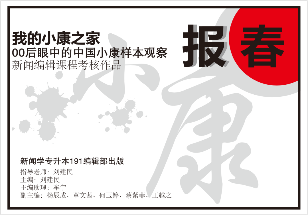《2020报春》展的是2019级新闻专业专升本班的44名同学的课程作品。他们分成了5个独立的版组,每个版组选出一个自己的主编。在刘建民老师的指导下,他们从近年来“行走的新闻“系列成果作品中寻找素材,从我的小康之家的角度,对《我家40年》和《新中国70年》的作品,切换了新的视角重新编辑。