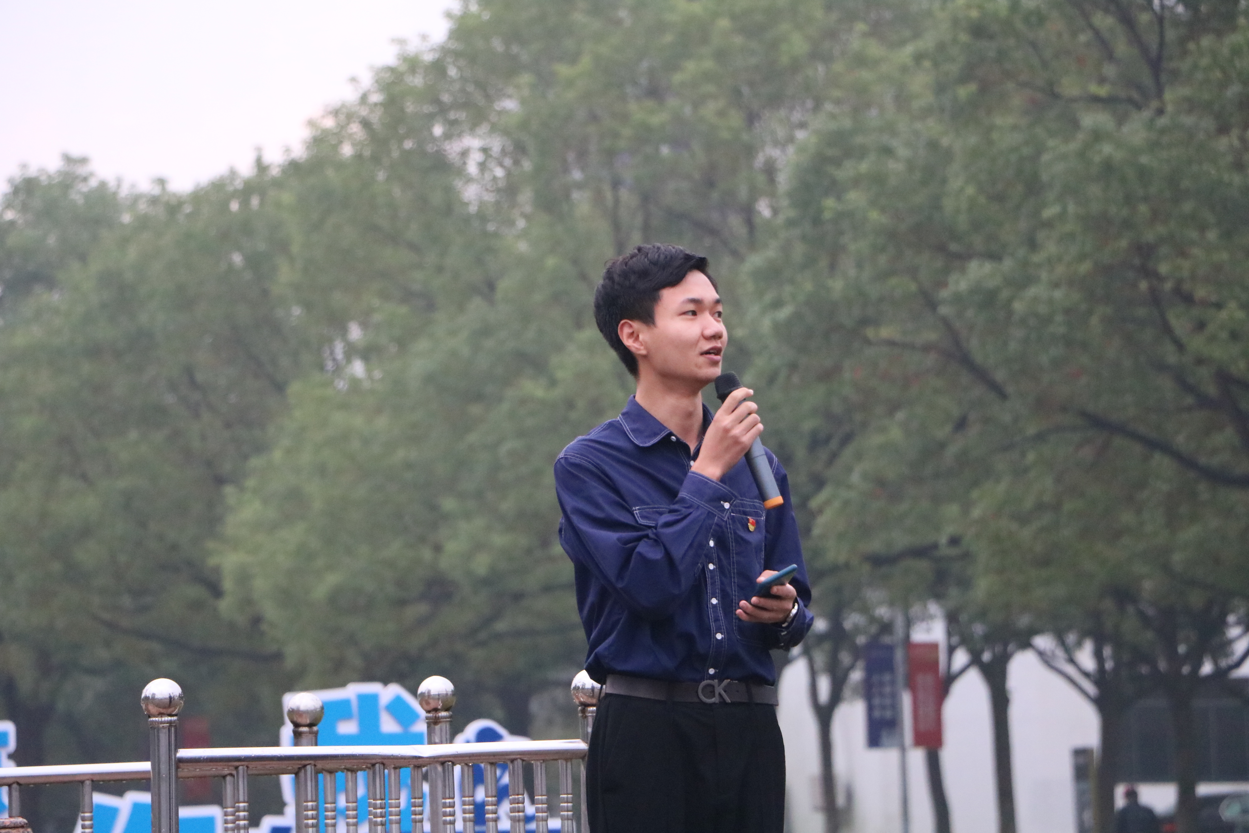 在全体师生的注目礼下,英姿飒爽的国旗护卫队队员们护送鲜艳的五星红旗进场,行礼完毕,伴随着庄严的中华人民共和国国歌,五星红旗冉冉升起,迎风飘扬。在庄严的国旗下,团委副书记丁六申老师发表讲话,他号召传媒与法学子要崇德向善,同路祖国复兴;勤学向上,练就过硬本领;知行合一,塑造健全人格;希望大家懂得学思践悟,用健全的人格引领人生方向、成就精彩人生。