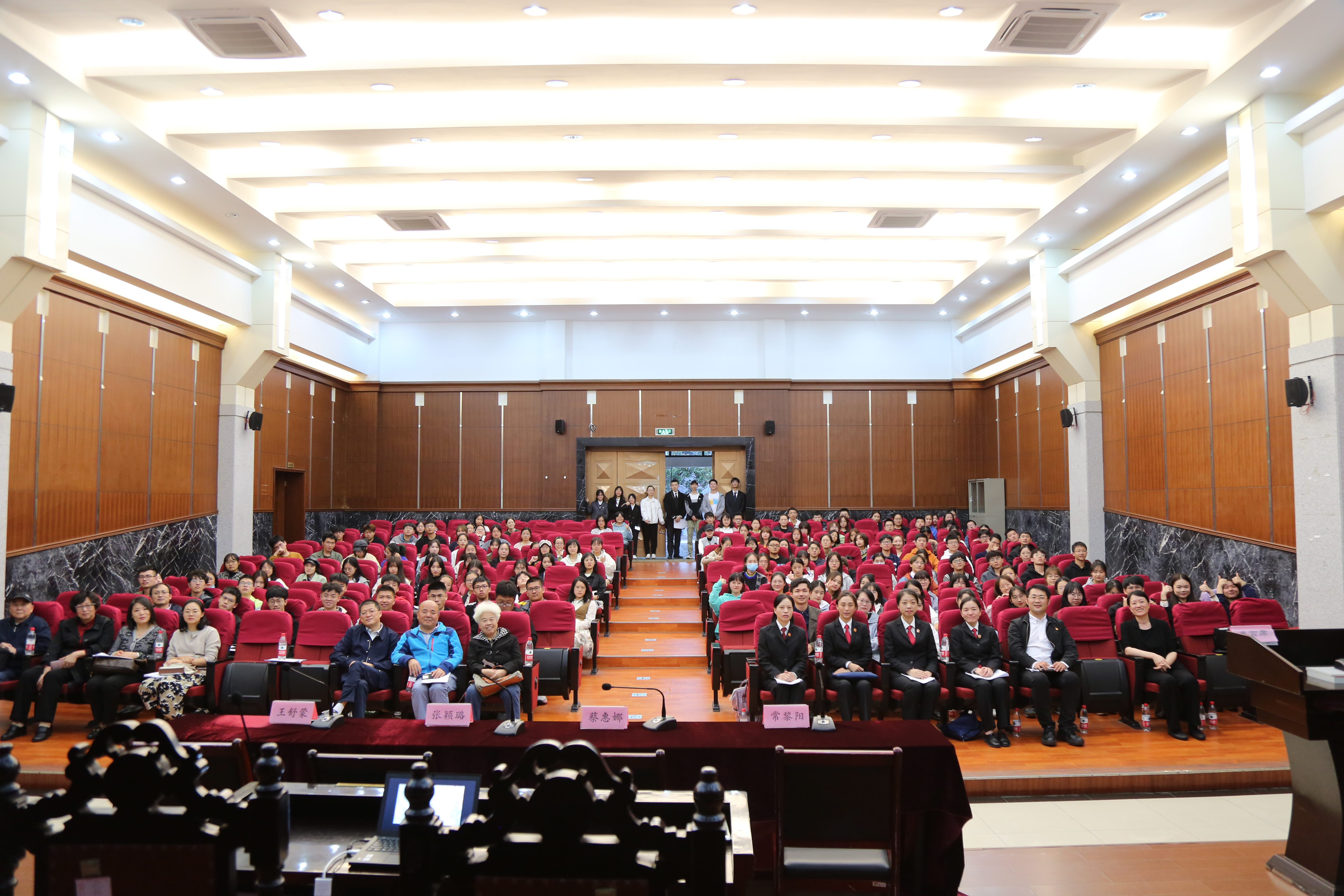 活动伊始,胡鹿鸣上台致辞,他对法官们的到来表示感谢,阐述了学习和宣传《民法典》的重要意义,并简要介绍了《民法典》宣传月的相关活动,希望同学们能够践行“知行合一”精神,培育务实情怀。随后,蔡惠娜庭长进行致辞,她表示宁波市中级人民法院清算与破产庭与永利集团有着长久的良好合作关系,指出模拟法庭有着重要的实践意义,鼓励同学们要学以致用,以赛促训,成为法治建设中坚力量。