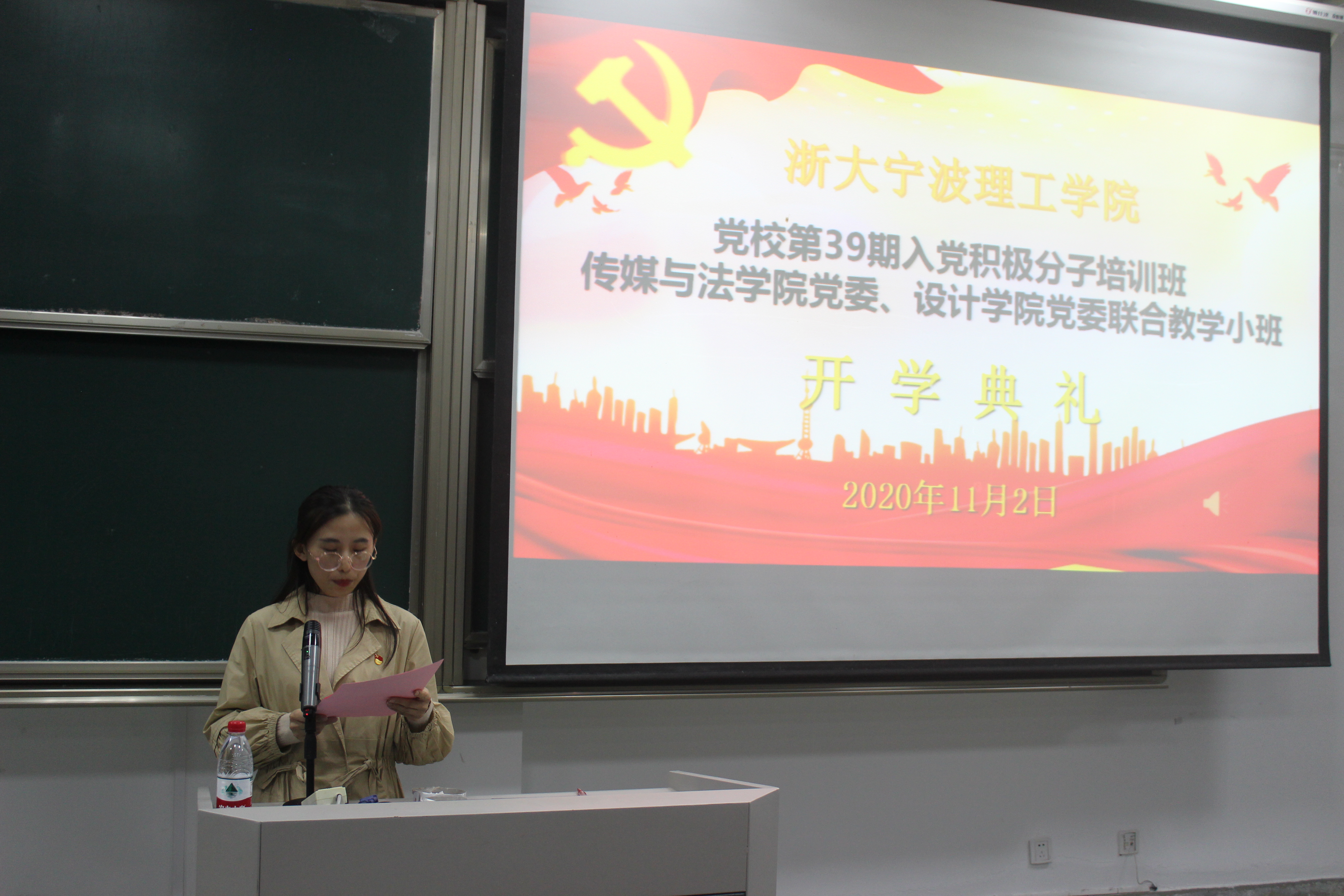 典礼在激情昂扬的奏唱国歌声中拉开序幕。党校班主任李倩倩宣读了党校授课计划、入党积极分子培训班学员课堂纪律和请假制度,对学员们提出相关要求与期望。设计公司环境设计191班厉艺潇作为学员代表上台发言,她表达了入党的决心,讲述了自己不断向党组织靠拢的奋斗历程,并代表学员们宣读了《入党积极分子党校学员承诺书》。全体党校学员认真阅读承诺书并郑重签名承诺。
