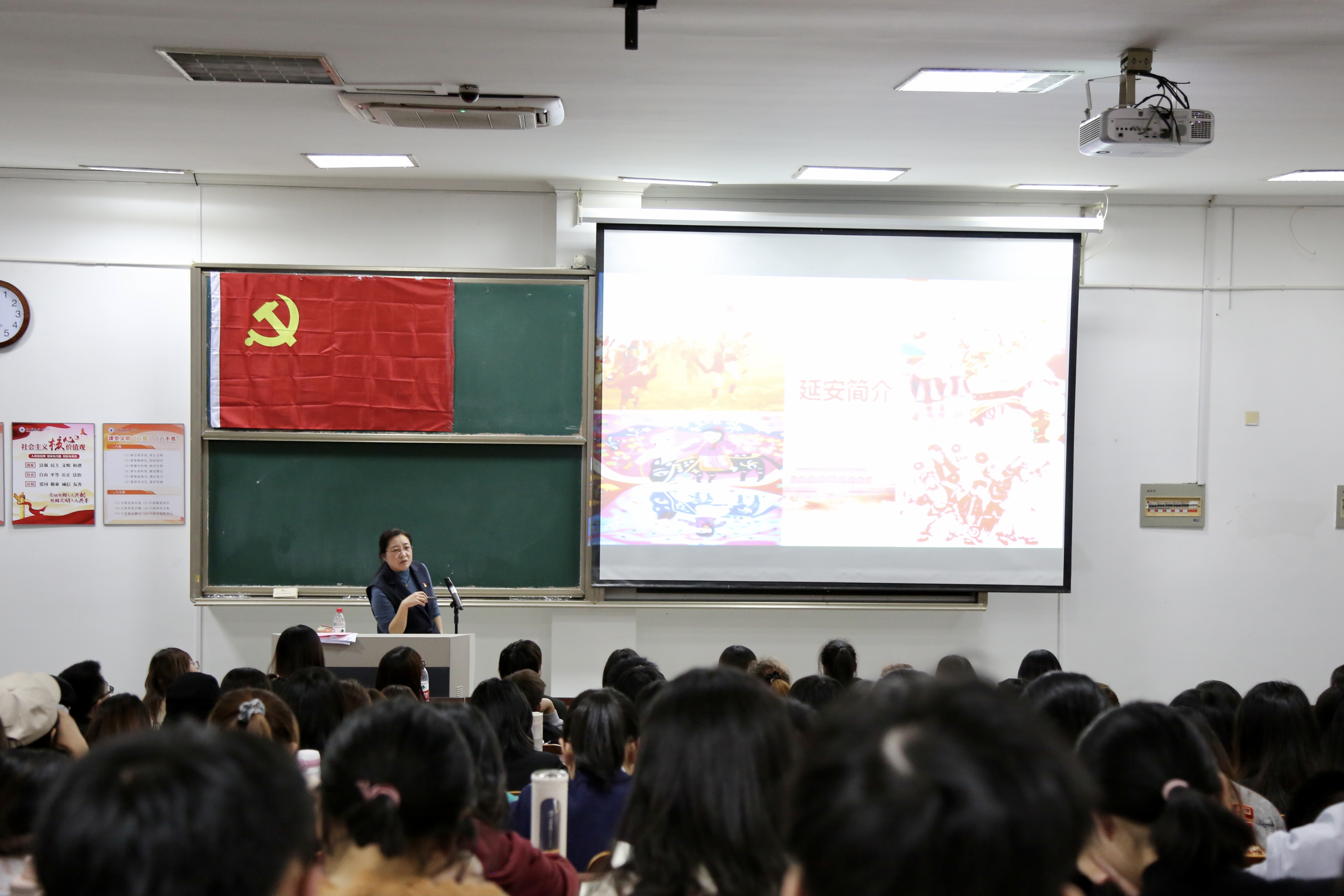 “三秦锁钥,五路襟喉”,延安是中华民族重要的发祥地。党中央和毛主席等老一辈革命家在这里生活战斗了十三个春秋,领导了抗日战争和解放战争,培育了延安精神,是全国爱国主义、革命传统和延安精神三大教育基地。朱小红老师从延安的地理位置和历史渊源出发,将延安的风貌绘声绘色地展现在现场同学面前,指出延安精神的精髓在于解放思想、实事求是的思想路线,其显著特征便是共产党人自力更生,艰苦奋斗的顽强精神。朱老师通过带领同学们回顾历史,向大家展现了中国共产党的优良传统和政治本色。