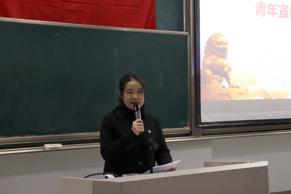 仪式在激情昂扬的国歌声中拉开帷幕。曲昊杨老师简要阐述了《习近平与青年老员工们》的主要内容,表达了对青年宣讲员们的殷切期望。紧接着,由夏文来老师为15名青年宣讲员颁发聘书并合影留念。青年宣讲员潘艺延作为代表分享自己的学习体会,表示从书中真切感受到习近平总书记关于青年工作重要思想的炽热情感,呼吁同学们要不畏艰难险阻,勇担时代使命,把个人理想追求融入党和国家事业之中。