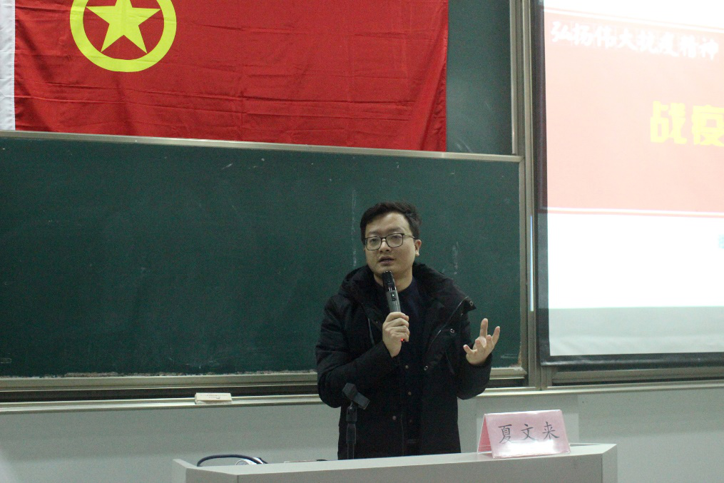 随后,夏文来老师为团校学员们讲授“弘扬伟大抗疫精神”主题团课,结合具体事例揭示了“战疫情,中国为什么能赢”的三大原因:第一,中国是全世界唯一拥有联合国产业分类中全部工业门类的国家,中国共产党的长期执政为“100%工业体系”提供了强有力的保障;第二,中国重生死,更重大义,五千年文明塑造了中华民族的品格;第三,实事求是,不断自我否定,中国共产党把人民群众生命安全和身体健康放在第一位。其中,夏文来老师讲述了“二战时期积贫积弱的中国人民向2万多犹太难民敞开怀抱”“为让女红军顺利分娩,董振堂率领一个团的战士阻击敌人直至孩子生下”等真实事件,引发了学员们的共鸣并为之动容。最后,夏文来老师对青年老员工提出了两点思考:一要考虑清楚“为了谁”和“成为谁”,二要思考时代大潮和个人奋斗关系。他强调作为群团组织是要为党和人民凝聚人心,全面推进依法治校,因此更要想清楚是“为了谁”。话音未落,现场响起热烈的掌声。
