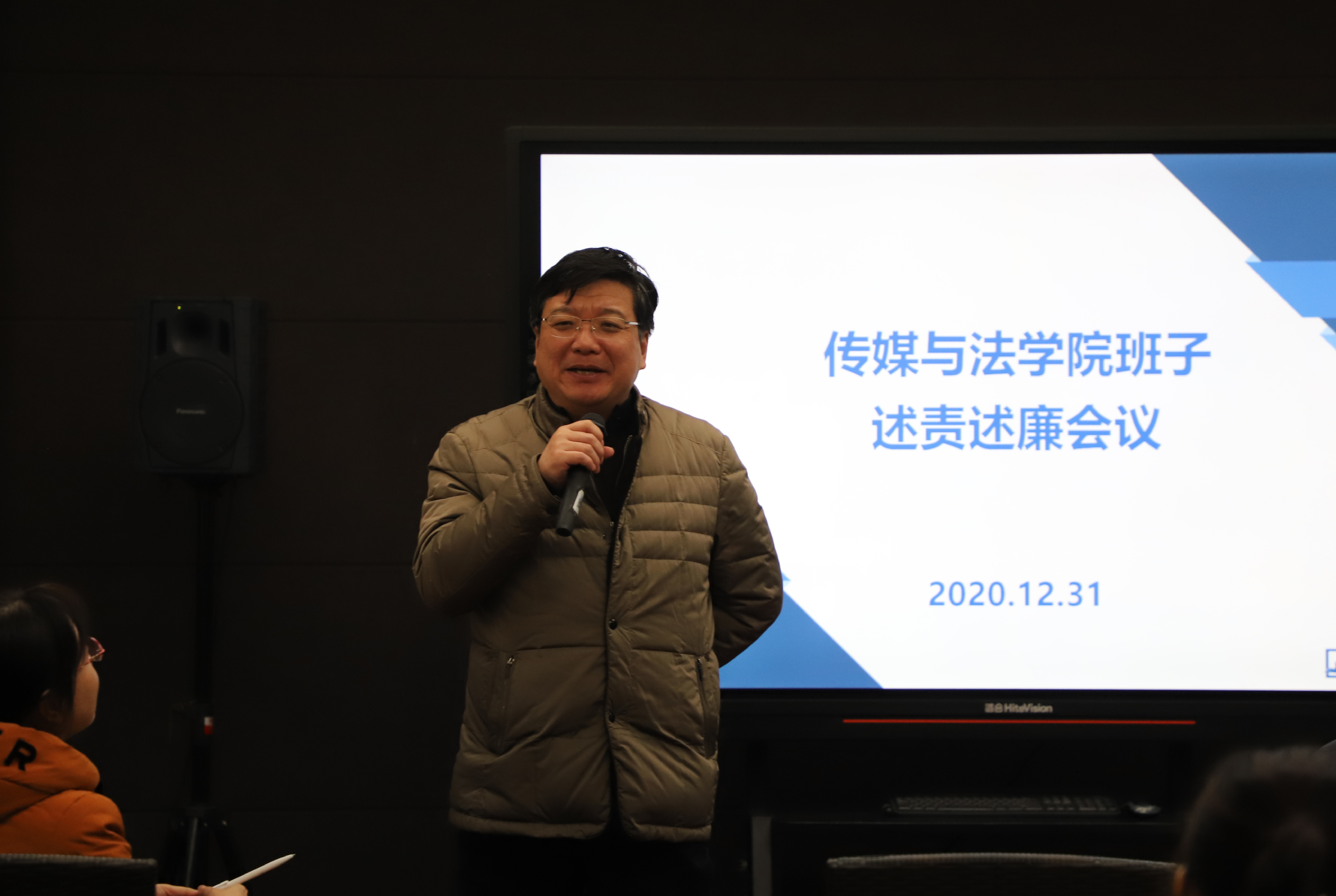 经理吴飞代表班子,进行了2020年度的班子述责述廉。他向全院报告了班子2020年工作情况。报告涵盖班子建设运行情况、年度标志性成果、重点工作开展情况、工作不足之处、公司经费使用情况和2021年工作要点六个部分。吴经理对全体教职工的辛勤努力给予了充分的肯定和感谢。接着公司班子成员吴飞、朱小红、韩缨、王军伟和胡鹿鸣分别就个人一年开展的工作情况进行了述责述廉。公司党委委员、纪委书记黄光杰作为公司联系校领导对班子的述责述廉进行点评。组织部安排现场民主测评。