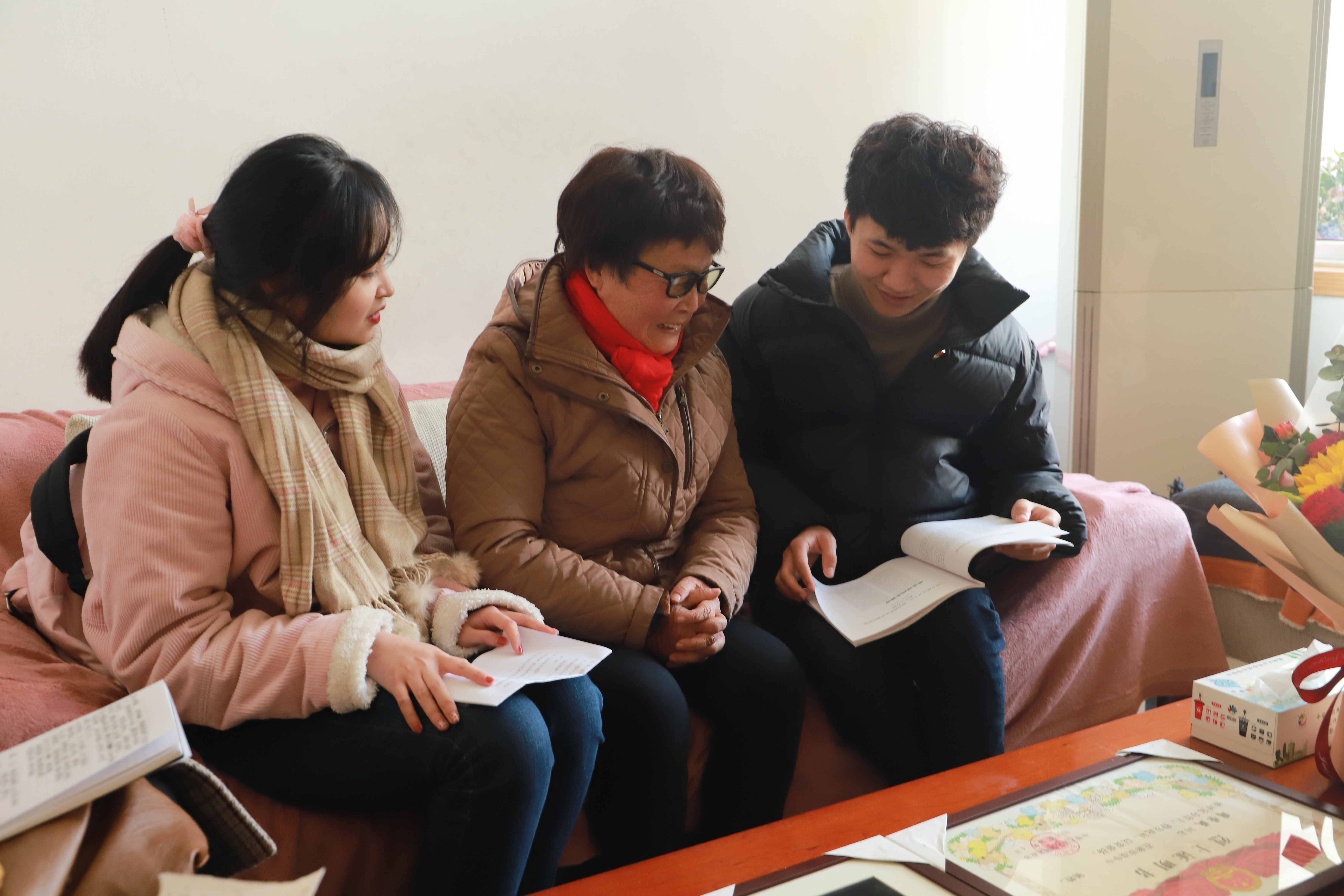 1月9日下午,曲昊杨老师带领6位同学下前往宁波市海曙区孝闻街慰问采访志愿军战士童复新同志。童复新同志今年88岁,神采奕奕、十分健谈,她在讲到当年参加革命时表现出来的随时准备战斗随时准备牺牲的强大信念感让在场所有师生为之动容。后来童老师在部队担任文化教员一职,复员后参加高考进入华东政法大学学习,毕业后辗转于各个岗位工作,从事过老师、法官、律师等不同行业,同学们都惊叹这般出彩的人生。