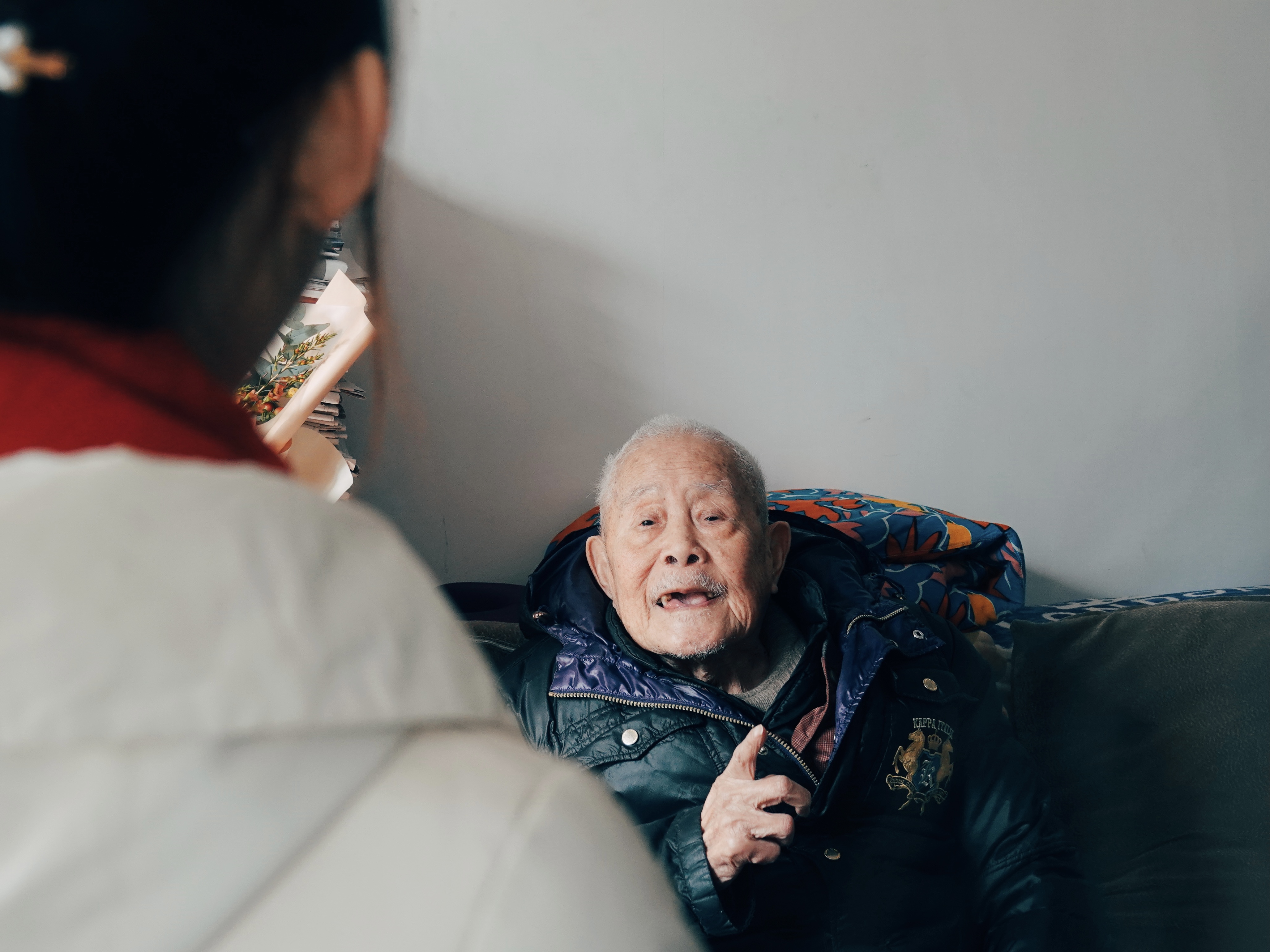 1月10日上午,赵红老师带领6位同学前往宁波市海曙区穆家岗永寿小区慰问采访离休干部翁绍初同志。今年已经95岁高龄的翁绍初同志除了腿脚有些不便仍然精神矍铄。翁老先生14岁就参军报国,他热情地跟我们讲述了很多四明山抗日军队的故事。翁老先生满腹才华,出过五本《大山之子》著作,并会写歌写诗,讲到动情之处直接引吭高歌,感染了在场的每一个人。