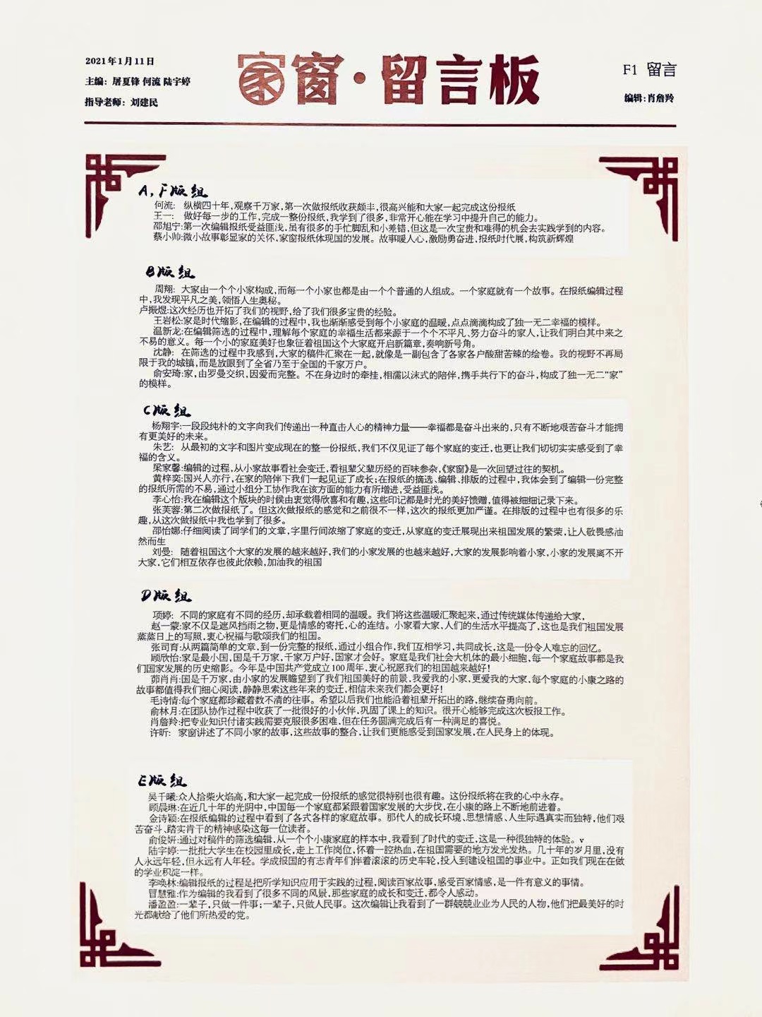 本年度《报春》展项目内容包括由新闻学191班和新闻学192班分别编辑的《家窗》报和《中国故事——万千寻常家庭的缩影》两份报纸组成。同学们以“新闻编辑”课程为依托,在“行走的新闻”三年多来在“我家四十年”、“国是千万家”、“我的小康之家”、“浙里是我家”等新闻调研中组织采写的300多篇故事基础上,通过主题选择、素材提炼、组版制作、撰写评语等环节,最终以一份完整的媒体形态展示出来。报纸内容希冀用记录家庭故事,来承载这一段光辉岁月的厚重与非凡意义,见证和记录祖国变迁和富强的历史,这也是同学们献中国共产党建党100周年的一份礼物。