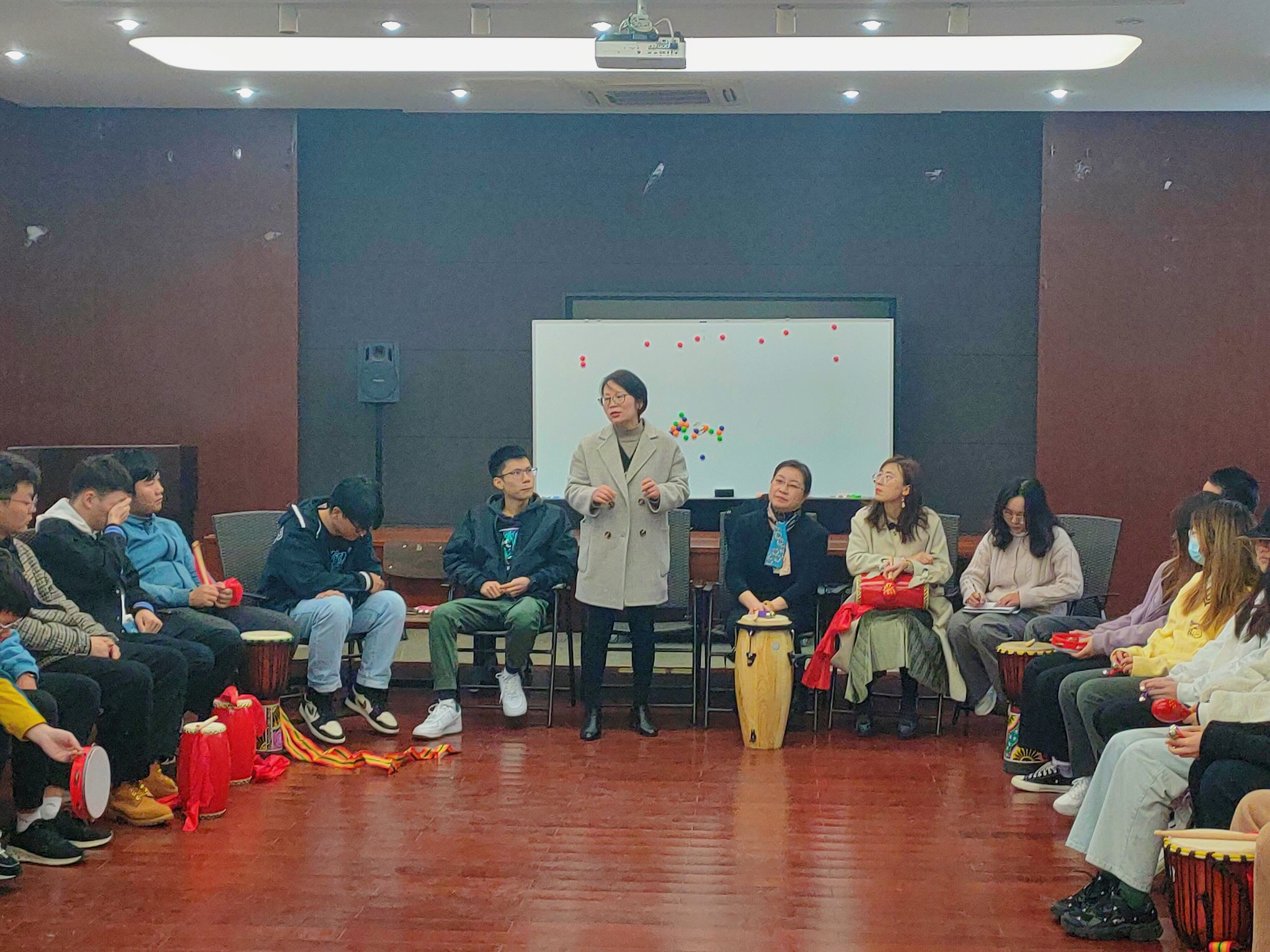朱小红老师表示,通过大家不同的敲鼓动作反映出了大家不同的风格和特色。团体心理辅导的开展不仅舒缓了同学们的情绪,释放了压力,同时利用鼓声宣泄了心中的情感。希望同学们继续以热情洋溢的姿态珍惜青春时光,在专业学习之余,丰富自己的老员工活。同时欢迎各班班长组织同学们参与到活动中来,增强同学们之间的互动交流,增强班级的凝聚力建设。