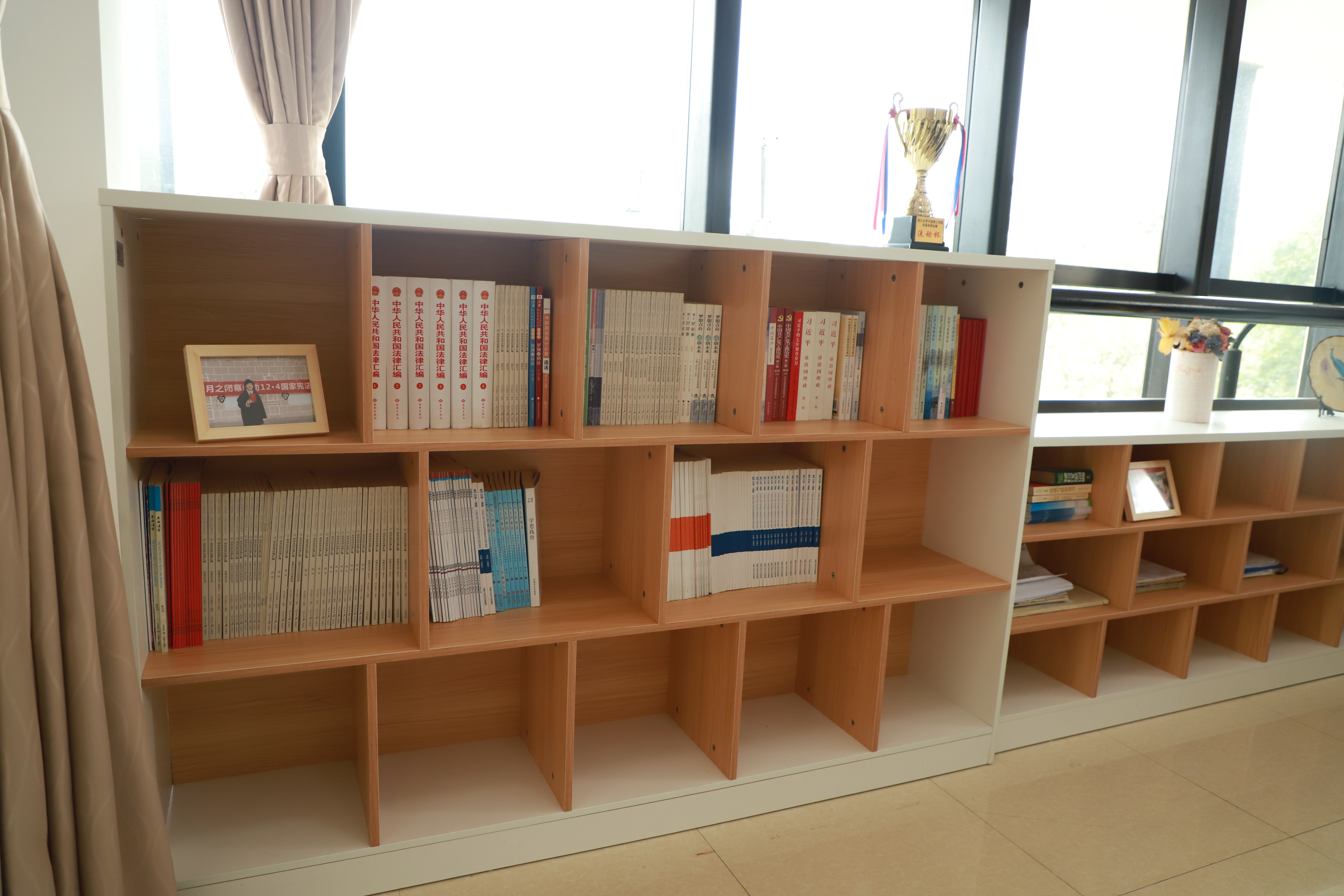 走到模拟法庭二楼 ,“法治书屋”四个大字很醒目地呈现在眼前,宽敞明亮的图书室里整齐干净地摆放着各种各样的法律书籍,比如有《中华人民共和国法律汇编》、《寻找法律的印迹》、《民主的历史》、《法治必胜》、《被误解的民主》等,不时有员工和老师前来浏览、借阅,这进一步推动了校园阅读,也会提高师生的法治意识,让全校师生有意识地深入了解法律知识,从而更好地维护自己的权益,知法、懂法、守法,法治书香飘荡在公司,进一步营造了浓厚的校园学法氛围。除此之外,法治书屋除了放置法律法治教育方面的书籍,同时也投放了党史资料、中外世界名著、现代文学、考研资料等书籍,以及也能看到若干相关竞赛活动的奖杯与奖状。
