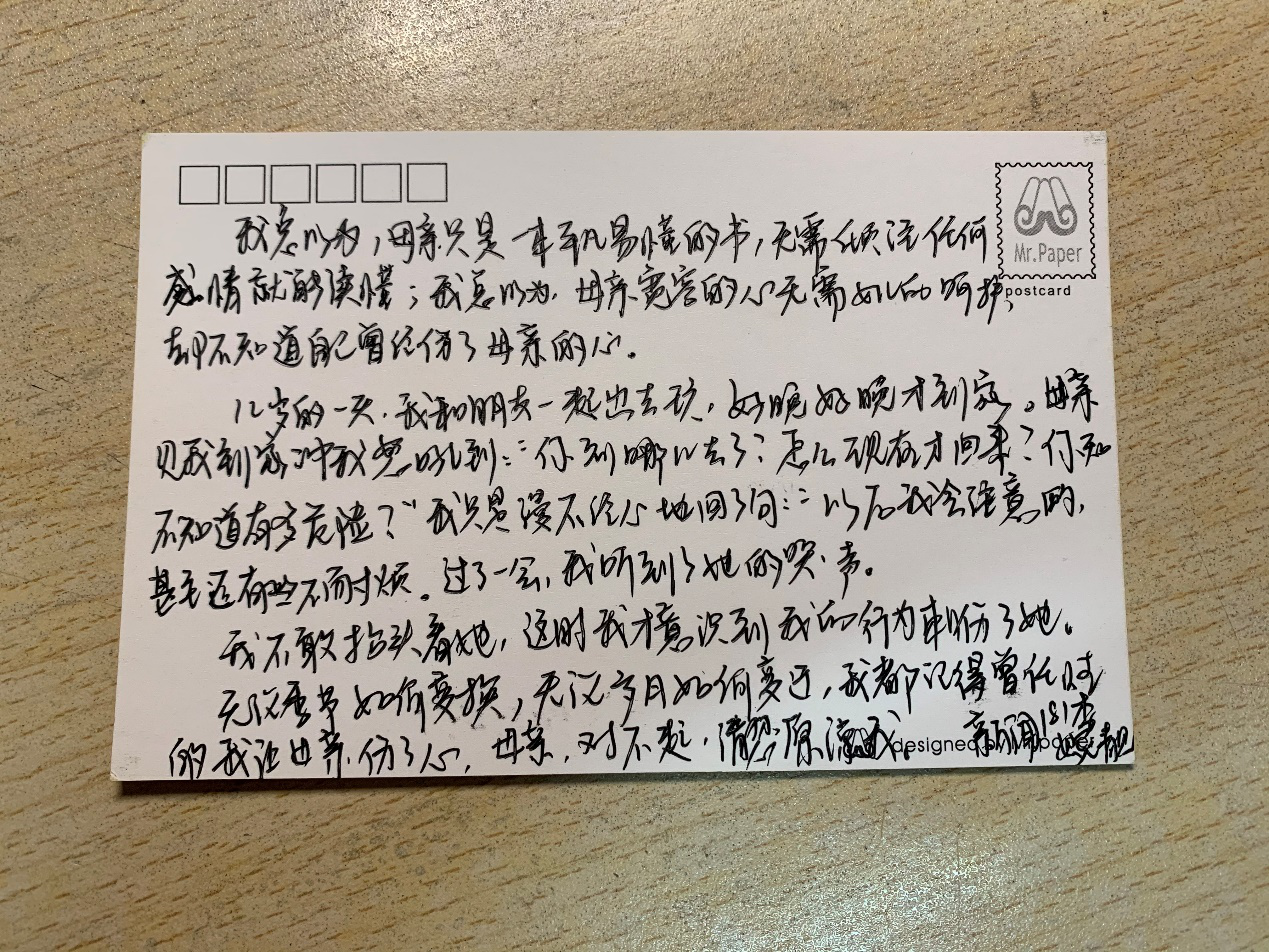 此次活动分为两个部分,分别是:“母亲我想对您说”征文和“我与母亲的合影”摄影征集。活动一经发出,就吸引了同学们的广泛关注。在收集到的作品之中,新闻181的李婉靓同学以明信片写信的方式表达了自己对母亲的感恩,为自己过去的不懂事,真诚地向母亲道歉。法学182的华云同学表示要为母亲创建特殊的相册,留下最美的回忆。网新184的李妍同学翻出了儿时与母亲的合影,表达了对母亲的理解与爱意。法学202的邹智慧同学则分享了自己与母亲的第一张合照,记录那永不回来的瞬间……一张张照片牵引出了无限的回忆,短短几行字抒发了孩子对母亲最纯粹的爱意。随着时光流逝,孩子在不断长大,母亲却日渐佝偻。同学们的字里行间都在慢慢学会以自己的方式向母亲表达爱意,对这份不求回报、默默付出的深厚情感表达最深切的谢意。