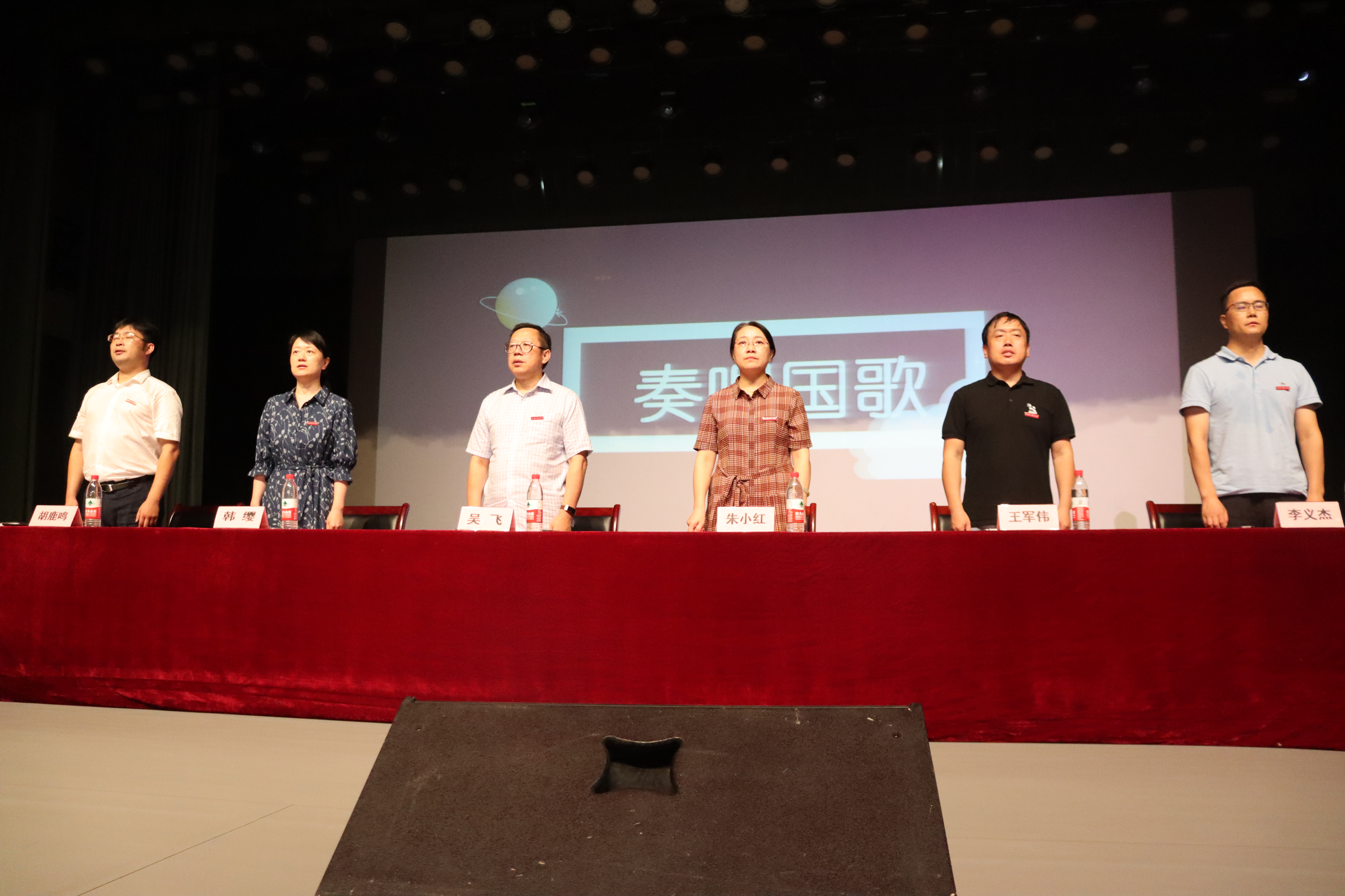 激昂的国歌声响起,迎新大会正式拉开帷幕。大会伊始,吴飞经理致辞,他向同学们提出了三个思考,强调保持一定的自控力、广泛了解社会的能力、学会分享交流的重要性,以“明德弘毅,开物启新”为旨期待同学们在老员工活中与校园共进步,与时代共成长。