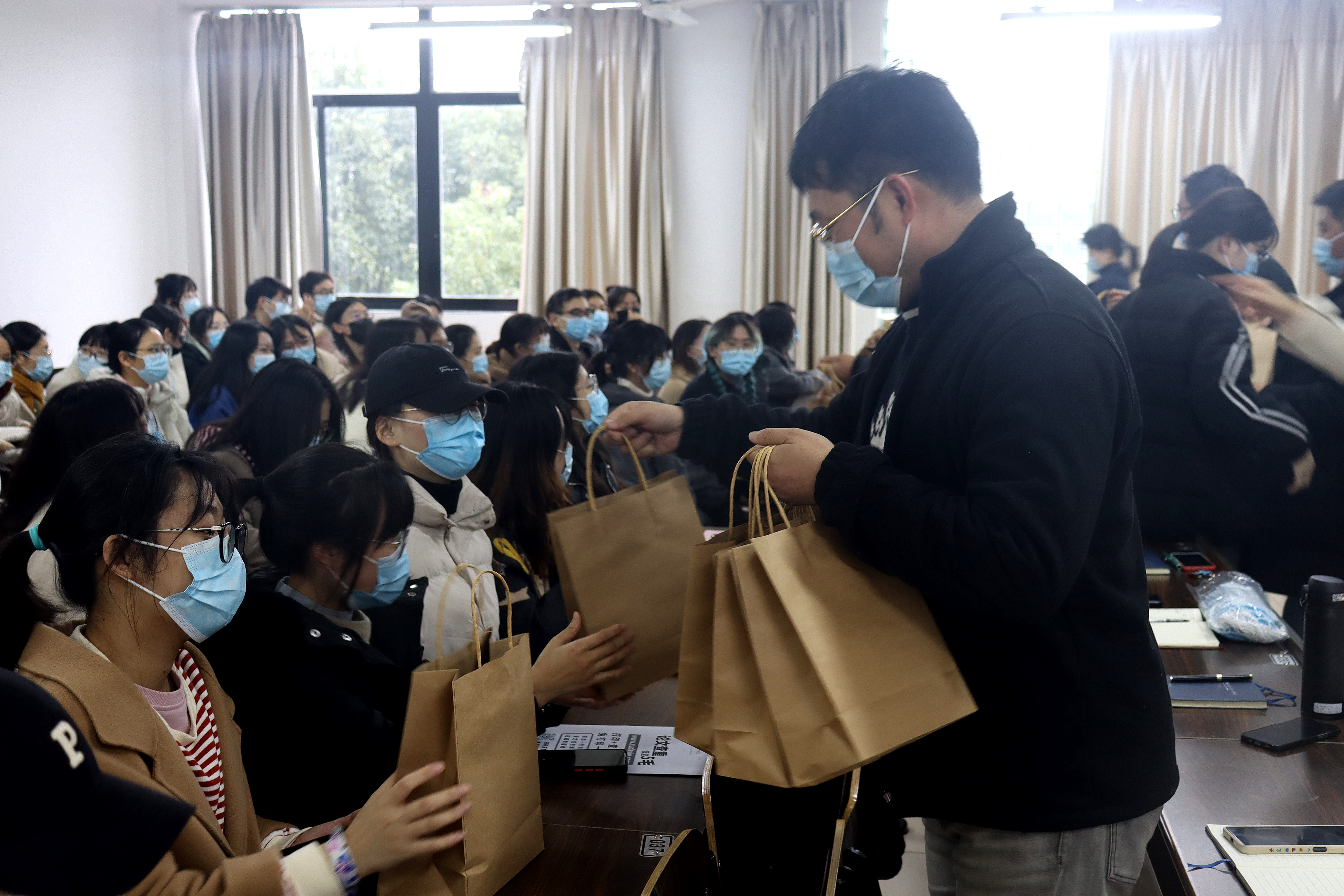 首先,吴飞教授结合自己的考研、考博经历给予建议指导,吴老师通过自己的故事拉近了和同学们的距离,给临近考试压力重重的考生营造了轻松活跃的氛围,他希望同学们能够劳逸结合,学会放松自己,同时坚持下去,不要放弃。紧接着,朱小红老师用“坚持到底”四个字给予了同学们极大的鼓励,期待他们取得最后的胜利,朱老师叮嘱同学们保持稳定的心态,确保身心健康。最后,胡鹿鸣老师提到,公司和老师们永远是同学们的坚强后盾,预祝同学们考出好成绩,在加油声中,老师们为同学们递上公司精心准备的“考研加油包”。