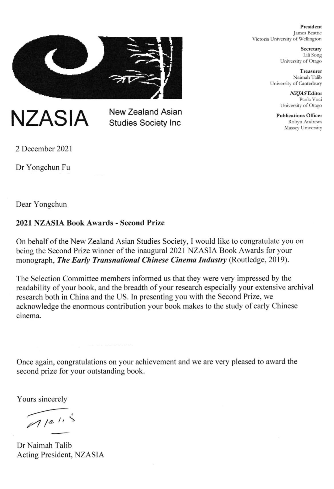 (该书同时获得2021年新西兰亚洲研究学会图书奖二等奖)