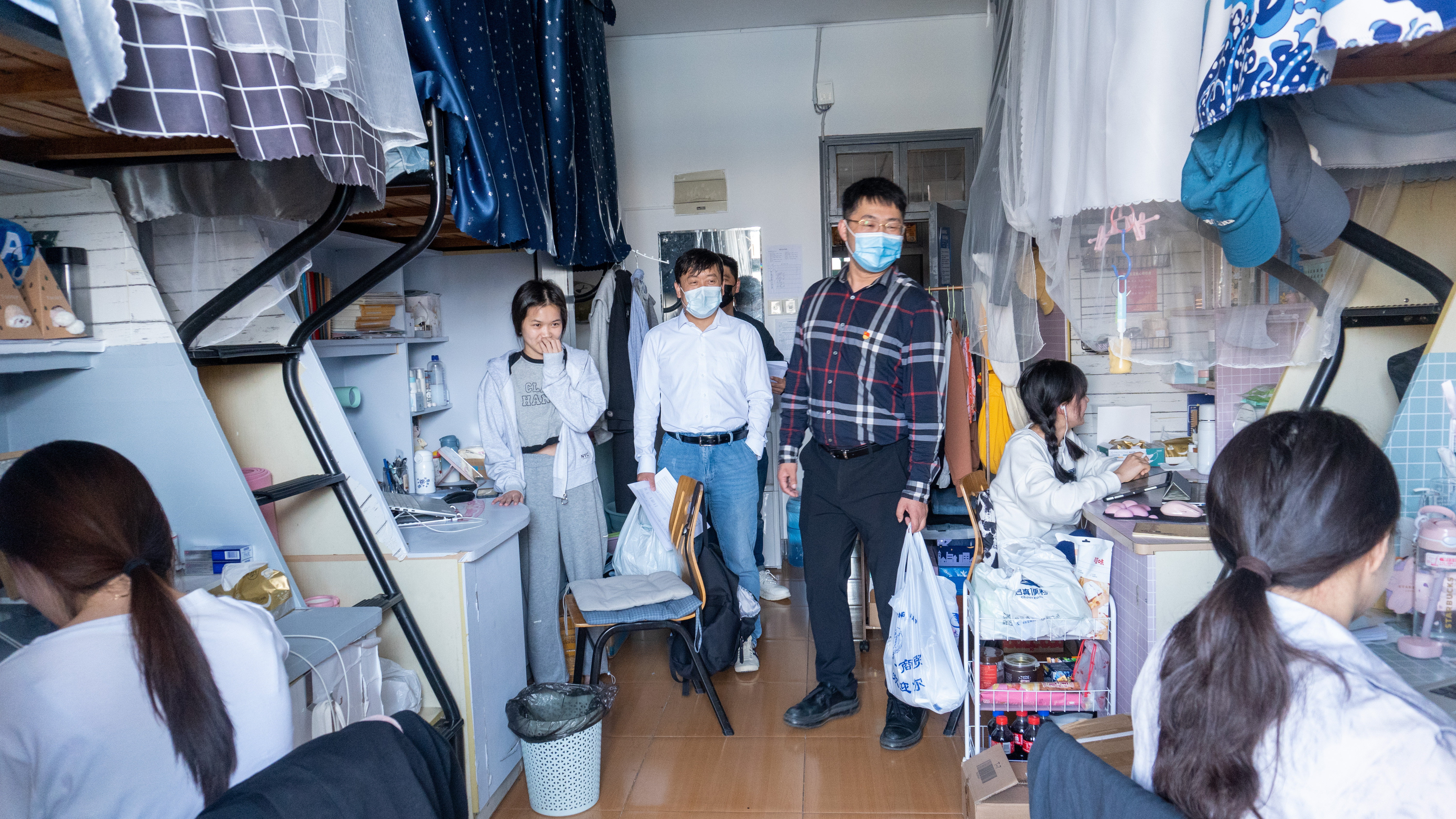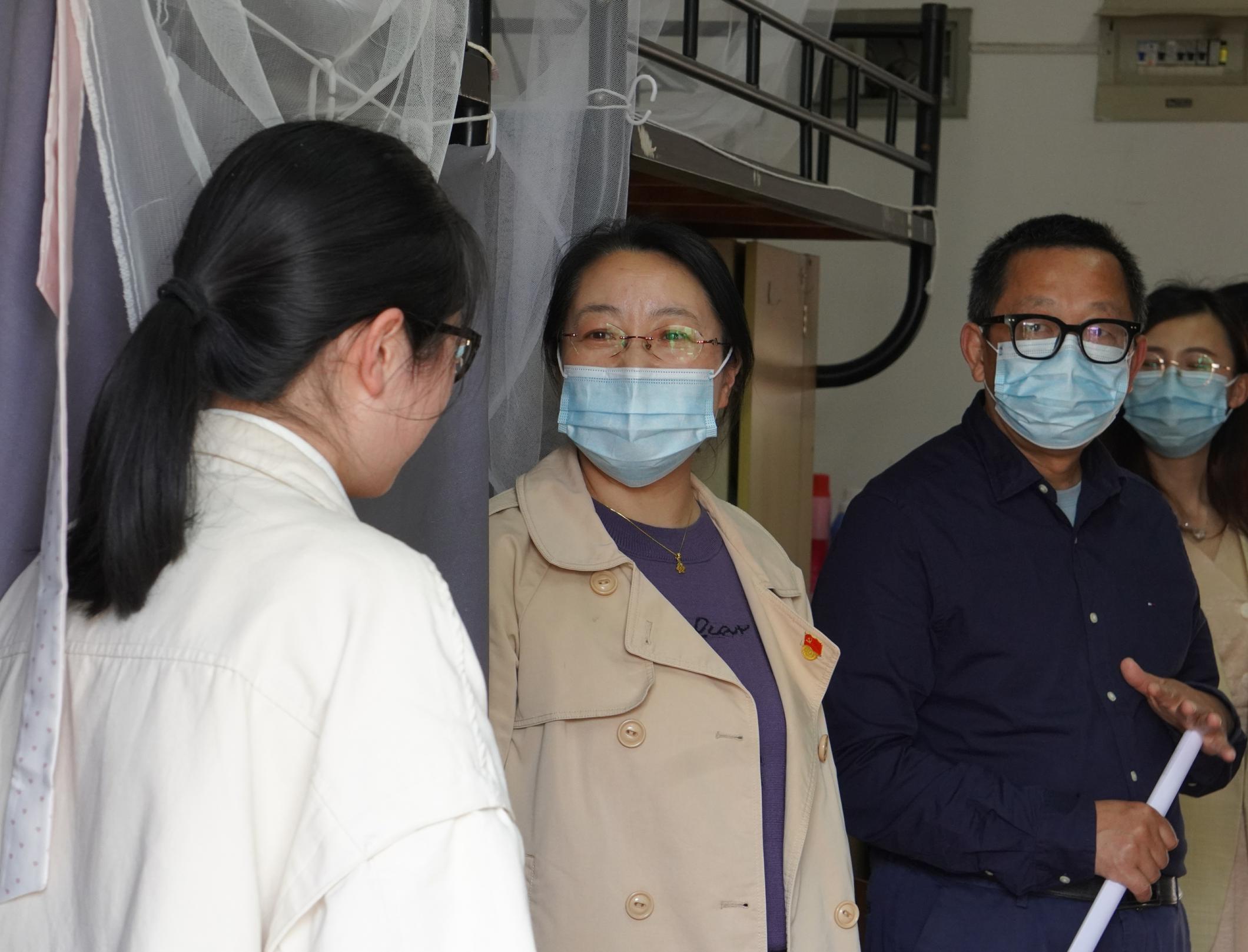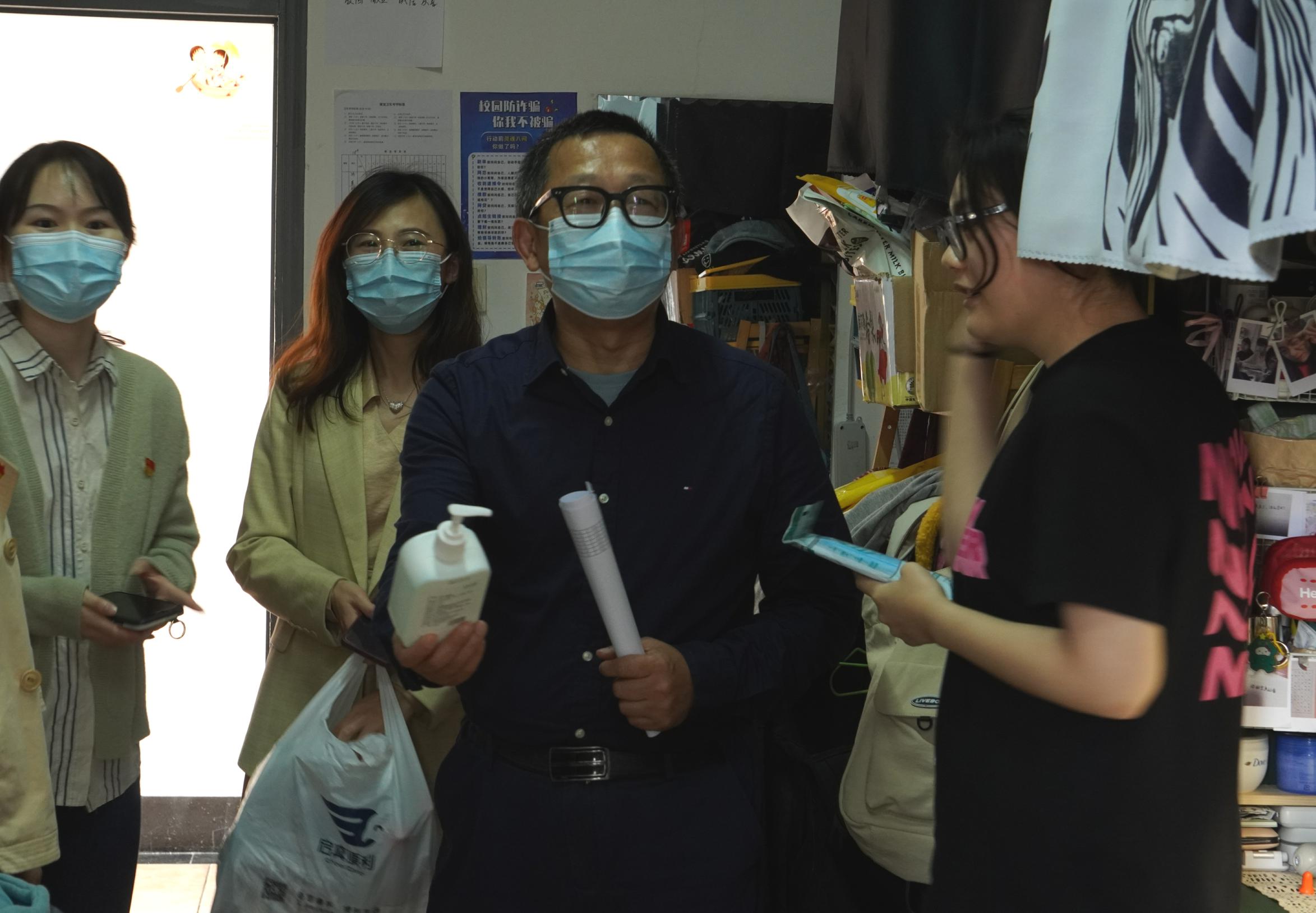 在走访宿舍过程中,公司领导向同学们询问近期的线上学习情况,并就住宿环境、饮食问题以及寝室卫生等方面进行了交谈,提醒同学们在疫情防控期间养成良好的生活习惯和积极的心理状态。在了解员工的课业情况后,老师们激励同学们快速调整心态,以良好的精神面貌投入日常学习。院领导也鼓励同学们在课余时间加强体育锻炼,劳逸结合,保持身心健康,同时叮嘱同学们在特殊时期更要加强与父母及家人的沟通联系。走访最后老师们还为同学们准备了一些基础的防疫物资,希望大家在封校期间依然能够做好防护,保护好自己和身边的人。