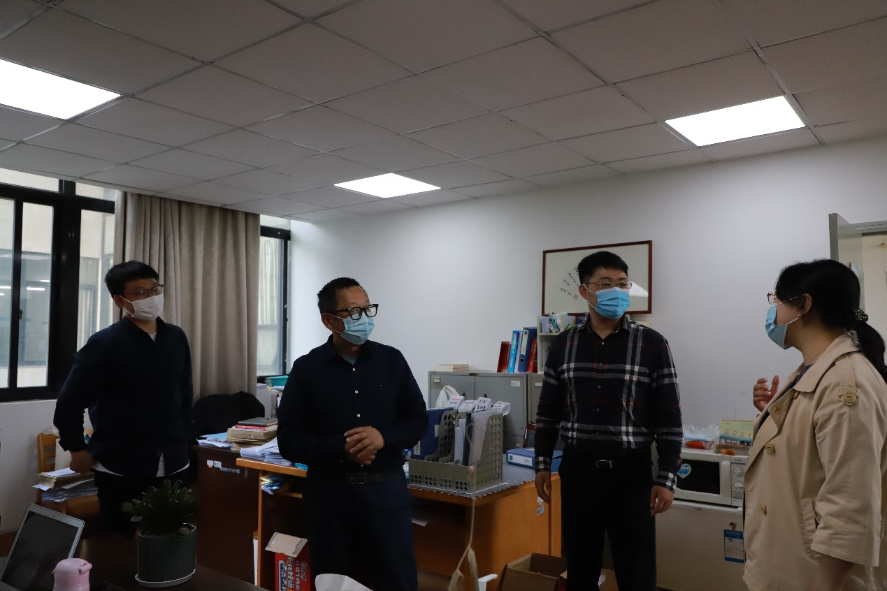 4月21日下午,304永利集团经理吴飞,党委副书记(主持工作)朱小红,党委副书记、纪委书记胡鹿鸣走访公司各个办公室,慰问奋战在疫情防控一线的老师们。