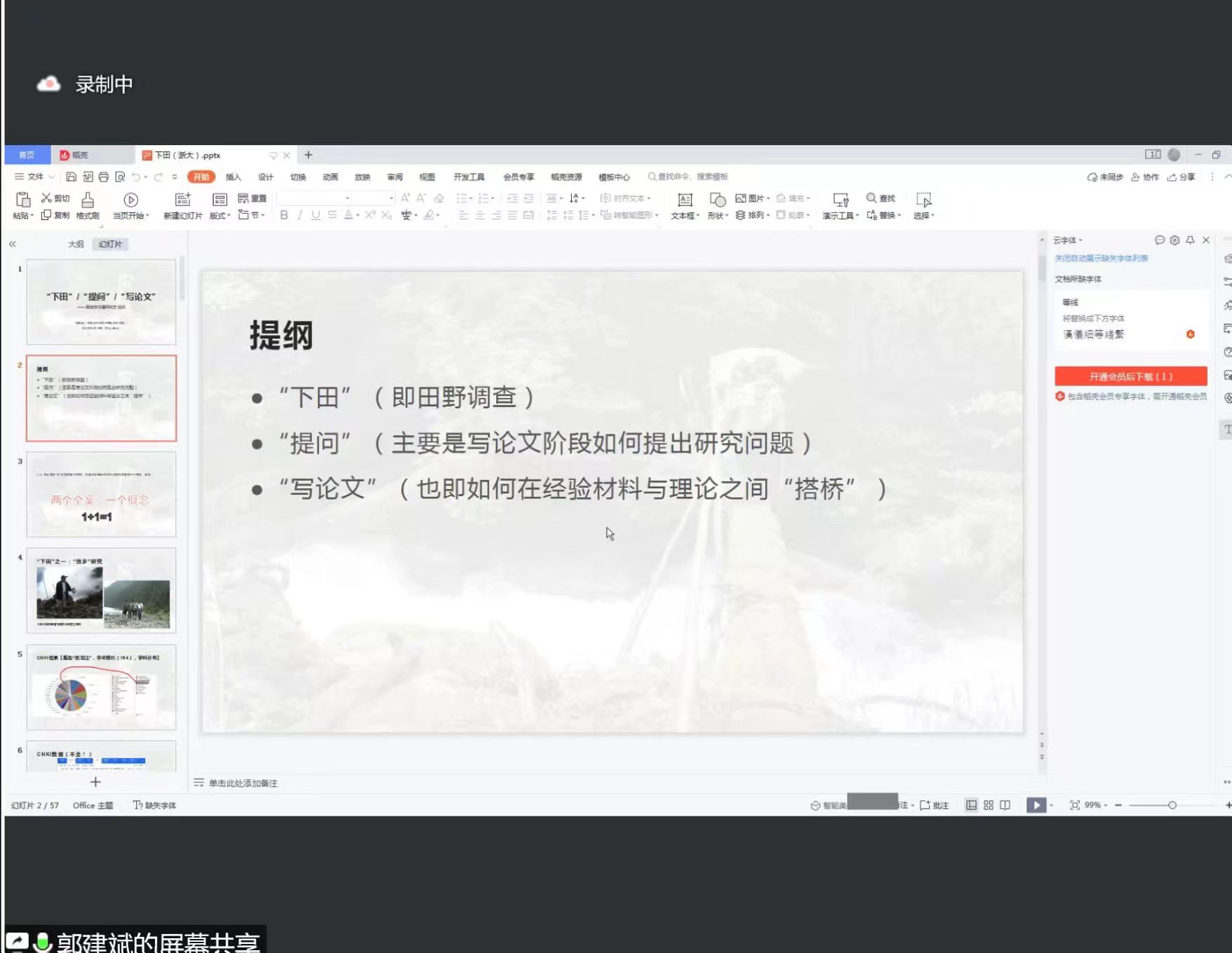 郭建斌教授从自己二十余年从事民族志传播研究的经历出发,介绍个人实地调研的经历,具体分析了“独乡电视”和“大三角”地区“流动电影”两个案例,并做详细的比较,围绕“下田”(即田野调查)、“提问”(主要是写论文阶段如何提出研究问题)以及“写论文”(即如何在经验材料与理论之间“搭桥”)进行讲述。郭建斌教授指出,许多人对“多点民族志”依然存在误解,对它的研究不应仅仅停留在文献方面,而是要明辨问题的新旧、虚实,思考传媒的作用与影响,发挥大众传播媒介在少数民族社区中的积极作用。最后,郭教授从自己的博士论文着手,给师生分享了论文写作的实用性方法,强调要打好提纲、提炼问题、分析文献、明确方向,找到论文的操作性概念。