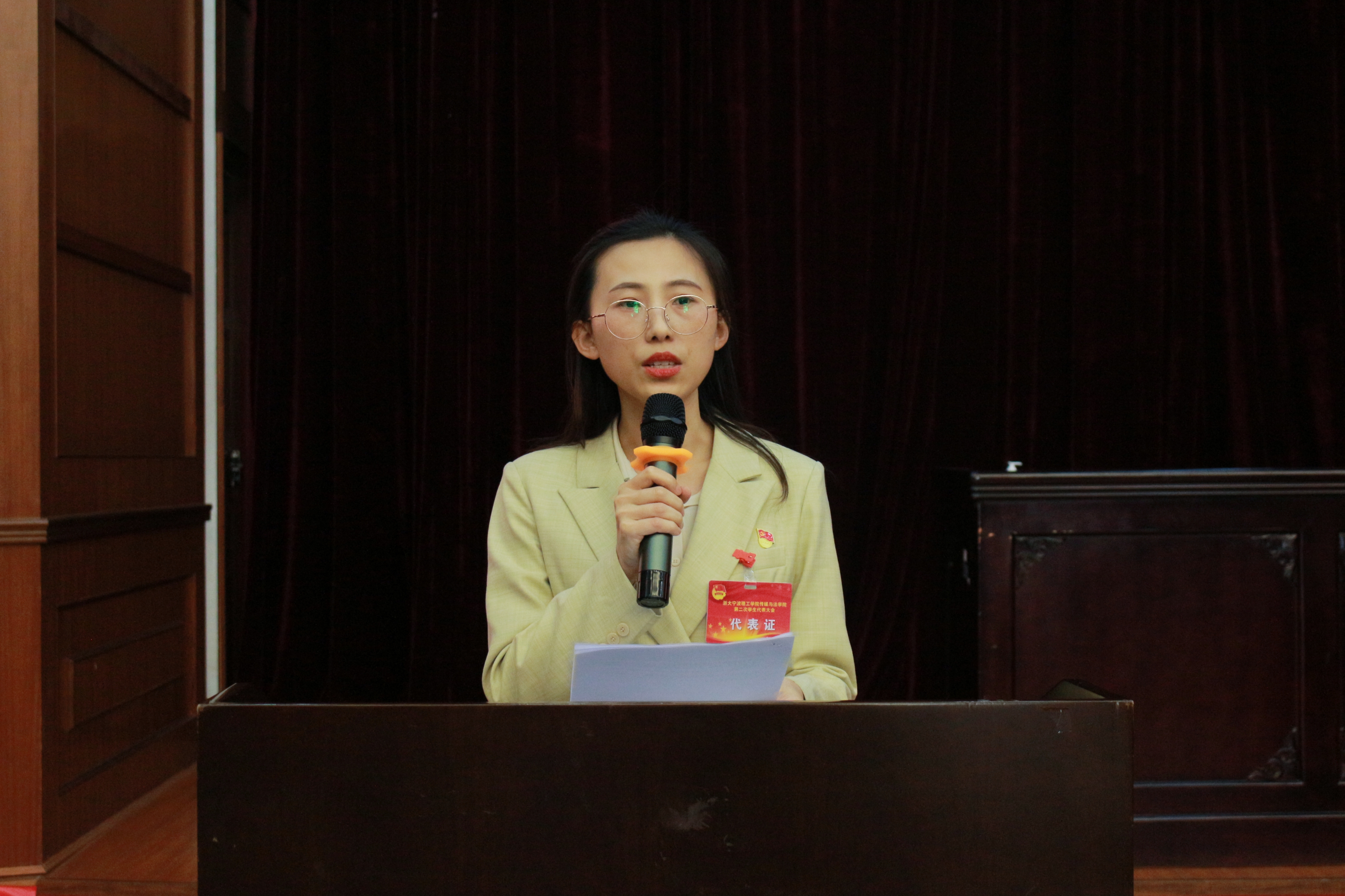 公司党委副书记、纪委书记胡鹿鸣代表公司党委,对大会的召开表示祝贺。他指出,2022年是党的二十大召开之年,也是中国共产主义青年团成立100周年,公司也朝着争创“省内一流,全国百强”的新征程不懈奋斗。胡老师向关心和支持公司员工会工作的校团委和各兄弟公司表示了感谢,肯定了员工会一年以来的工作,同时对于新一届员工会和公司青年提出了三点希望:第一、坚定理想信念,勇当时代先锋;第二、担当服务职责,牢固桥梁纽带;第三、加强自身建设,创造青春佳绩。