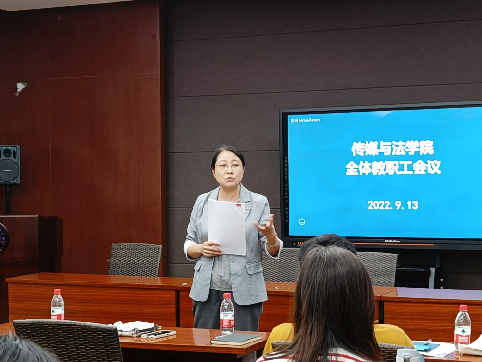公司党委书记朱小红首先强调要下真功夫把浙江省第十五次党代会精神落到实处、干在前面;第二,肯定了开学初防疫期间教师们的大局意识,以及通过思想动态调研情况肯定了大家在教学、科研和管理等各项工作方面的认真规划和积极心态;第三,特别强调要提高战略意识,务必锚定申硕,优化完善各项指标,绝不掉以轻心;第四,公司将持续推进“每周一学”教师政治理论学习计划,进一步提升教师思想政治素质;最后,朱小红书记强调全体教师要守好课堂阵地,注意言行规范,积极投身宁波文明典范城市创建工作,加强师德师风建设,牢守安全稳定底线,护航党的二十大胜利召开。