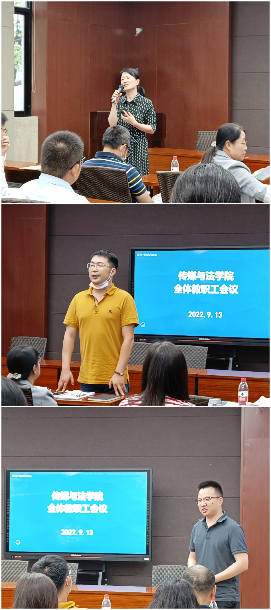 韩缨副经理汇报了开学第一周的线上教学情况,并希望大家能积极参与教研教改项目的申报。李志副经理表达了对大家信任的感谢,承诺做好服务工作,带领大家在学术方面登上新台阶。胡鹿鸣副书记首先汇报了开学初员工工作情况,强调师生防疫必须严格遵守公司政策,接着通报了2022届毕业生就业情况,进一步开展了廉洁教育和安全教育,并部署了下一阶段的分工会工作。