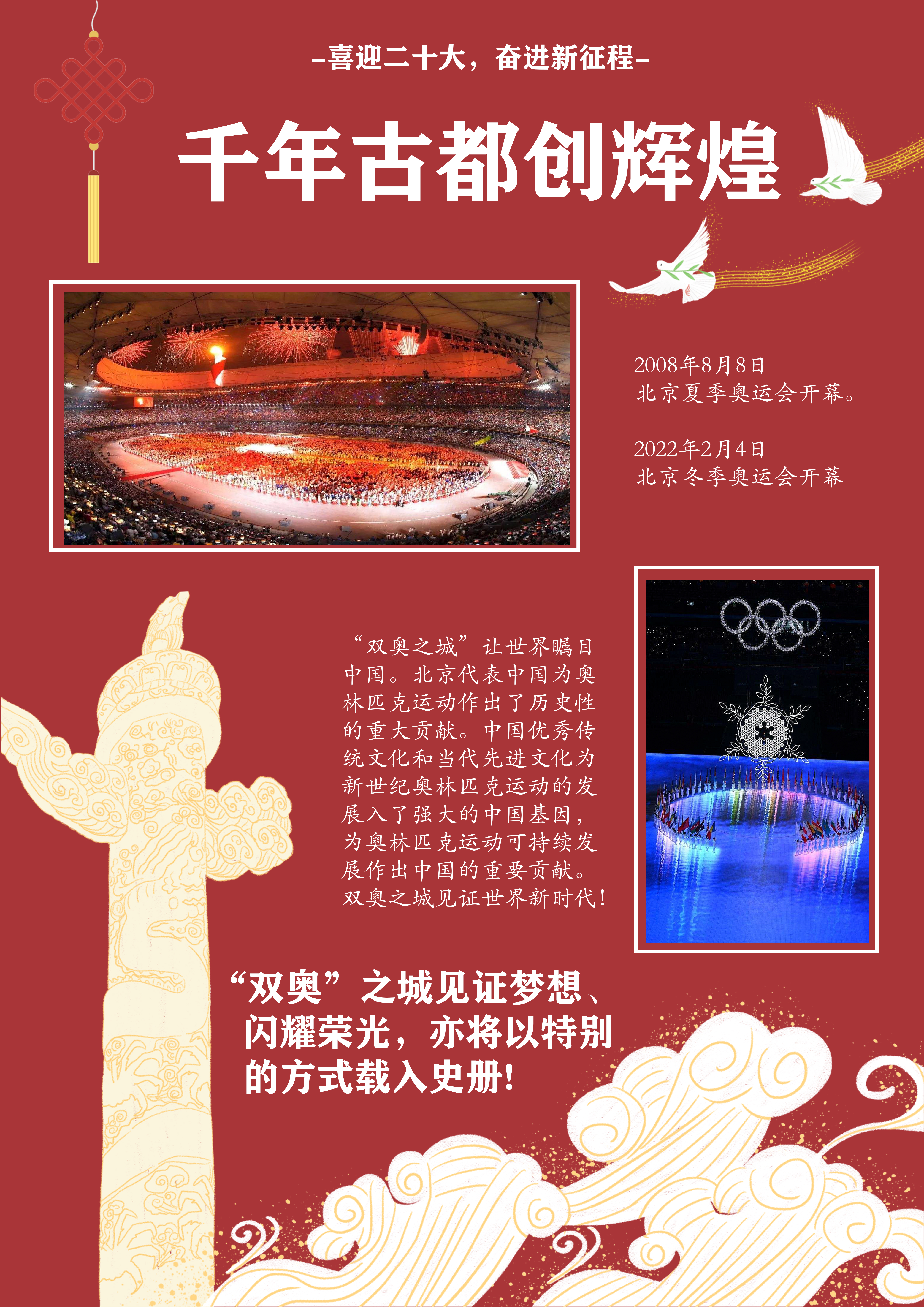 参赛选手们用丰富的创造力和画笔绘出了一幅幅精美的海报,表达了“党在我心中,永远跟党走”的决心,发出了“强国有我”的豪言壮志,回顾了在党的带领下我们迎来民族发展新纪元、港澳回归的历史和走上改革开放谋复兴的艰难历程,再现了“万丈光芒两弹爆”的辉煌时刻,抒发了“双奥”之城的自豪之情。