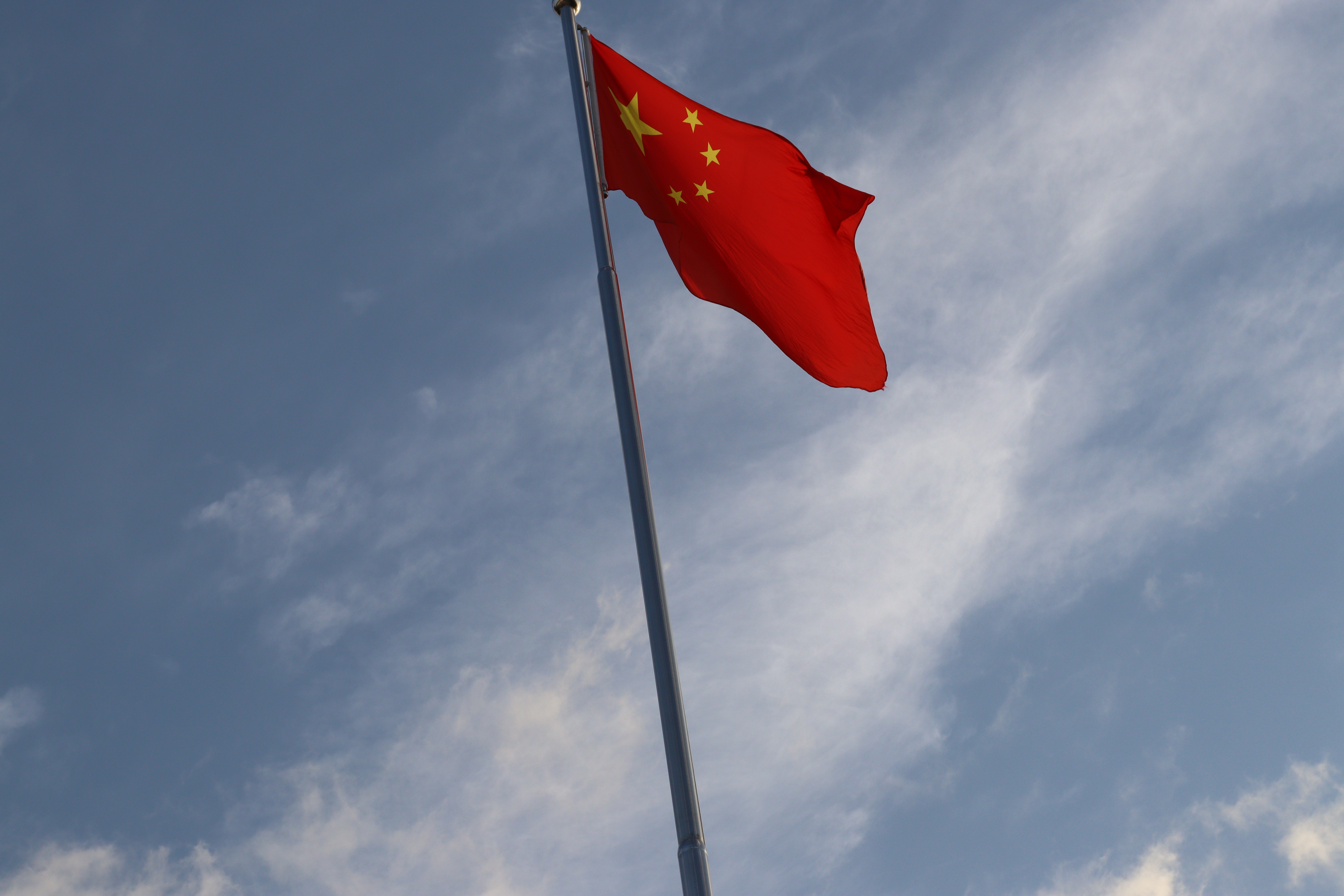 升国旗,奏唱国歌。国旗队迈着整齐有力的步伐,护送着红旗走向升旗台。在全体人员的注视下,五星红旗伴随着激昂嘹亮的歌声冉冉升起。