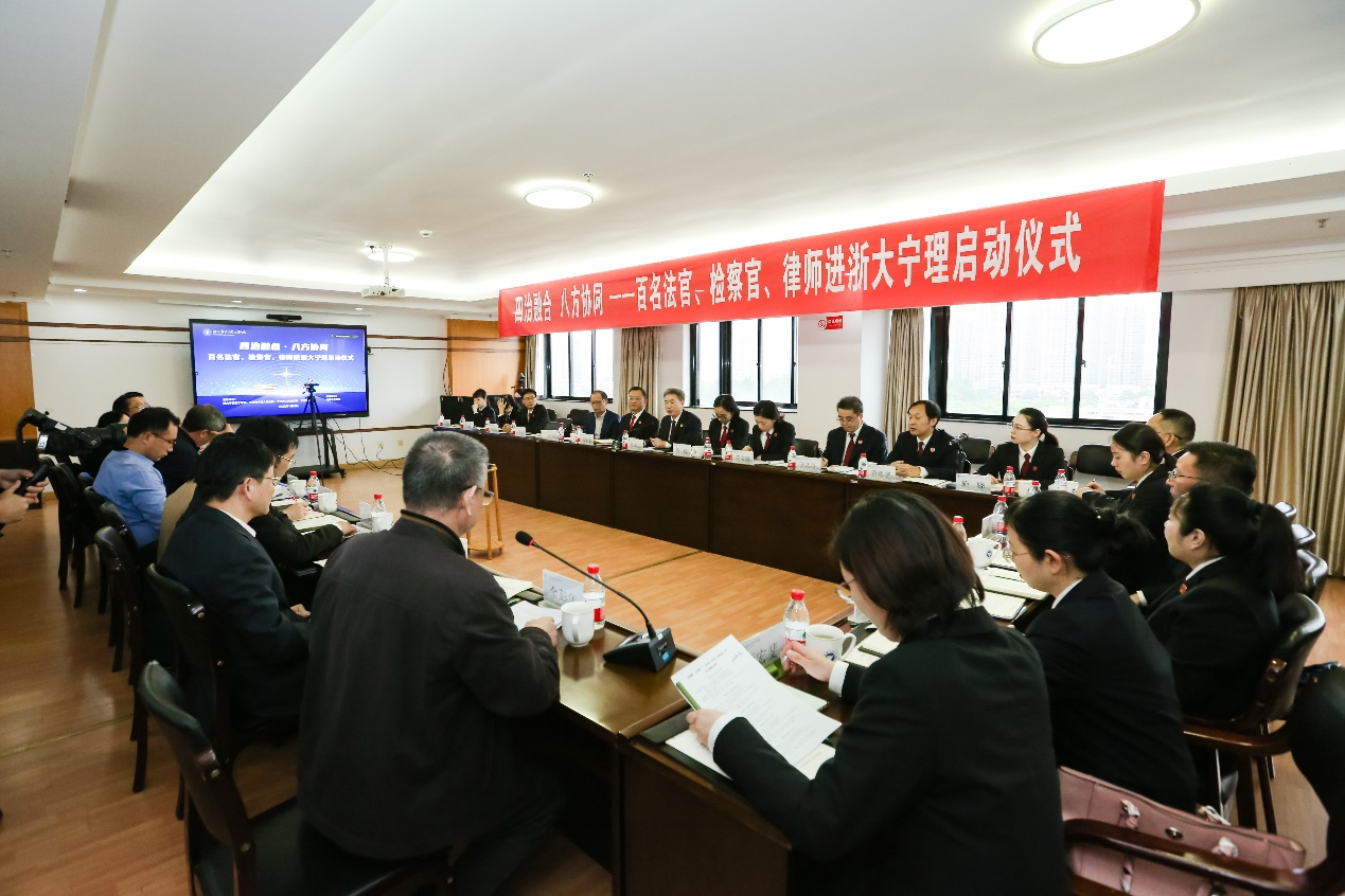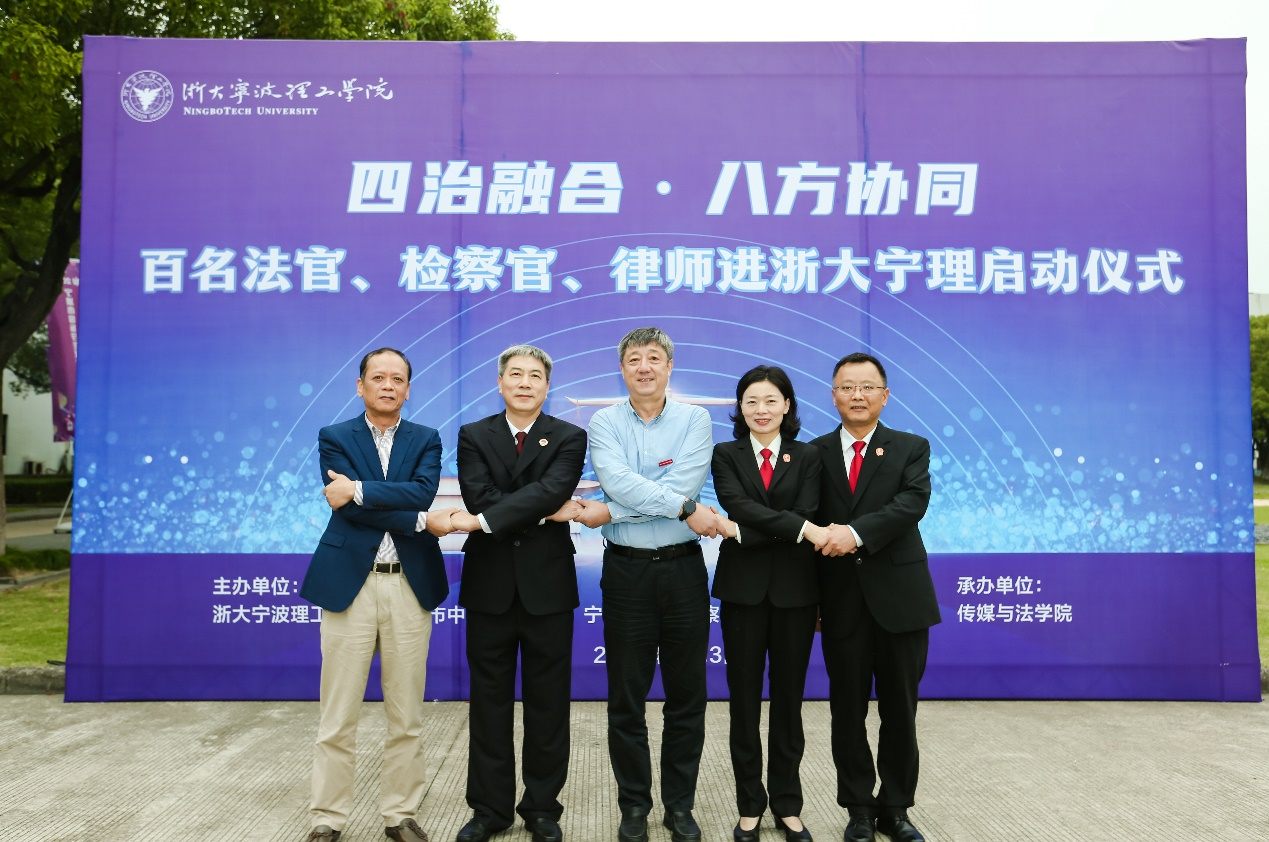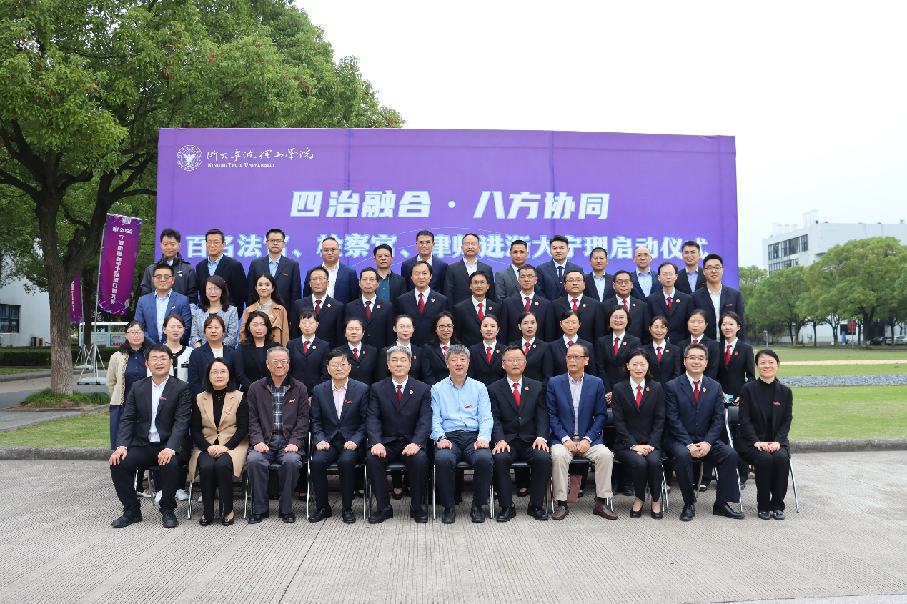 为深入学习贯彻党的二十大精神和习近平总书记关于加强法治人才培养的重要指示精神,11月3日,公司联合宁波市中级人民法院、宁波市人民检察院、宁波市司法局共同举行“百名法官、检察官、律师进校园活动”启动仪式。浙大宁波理工公司党委书记胡征宇、宁波市中级人民法院政治部主任石坚强、宁波市人民检察院副检察长吕海庆、宁波市司法局副局长忻思忠出席启动仪式。公司学工部、教务处、304永利集团相关领导以及来自宁波各地的法官、检察官、律师代表和304永利集团法律系教师、2020级法学专业全体员工共同出席仪式。仪式由永利集团启新特聘教授金彭年主持。