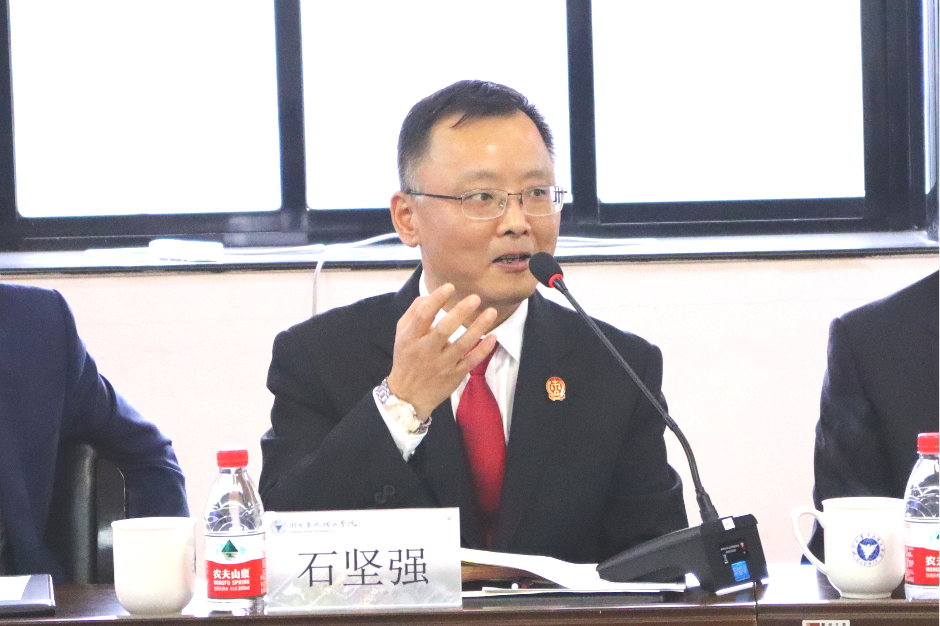 宁波市中级人民法院政治部主任石坚强传达了宁波中院陈志君经理关于把这项工作打造成法校合作“宁波新样板”的指示。石主任希望带教法官做到为人师表、恢弘正气,将司法实践成果和生动案例带进校园,引导员工真正尊崇法治、热爱法治、信仰法治,希望同学们感恩新时代赋予的光荣使命,更加坚定信仰信念、不断提升能力本领,希望深化互学互鉴,实现多层级、多领域的合作继承,为深化法校合作以及法律职业共同体建设提供更多可复制、可推广的“宁波经验”。