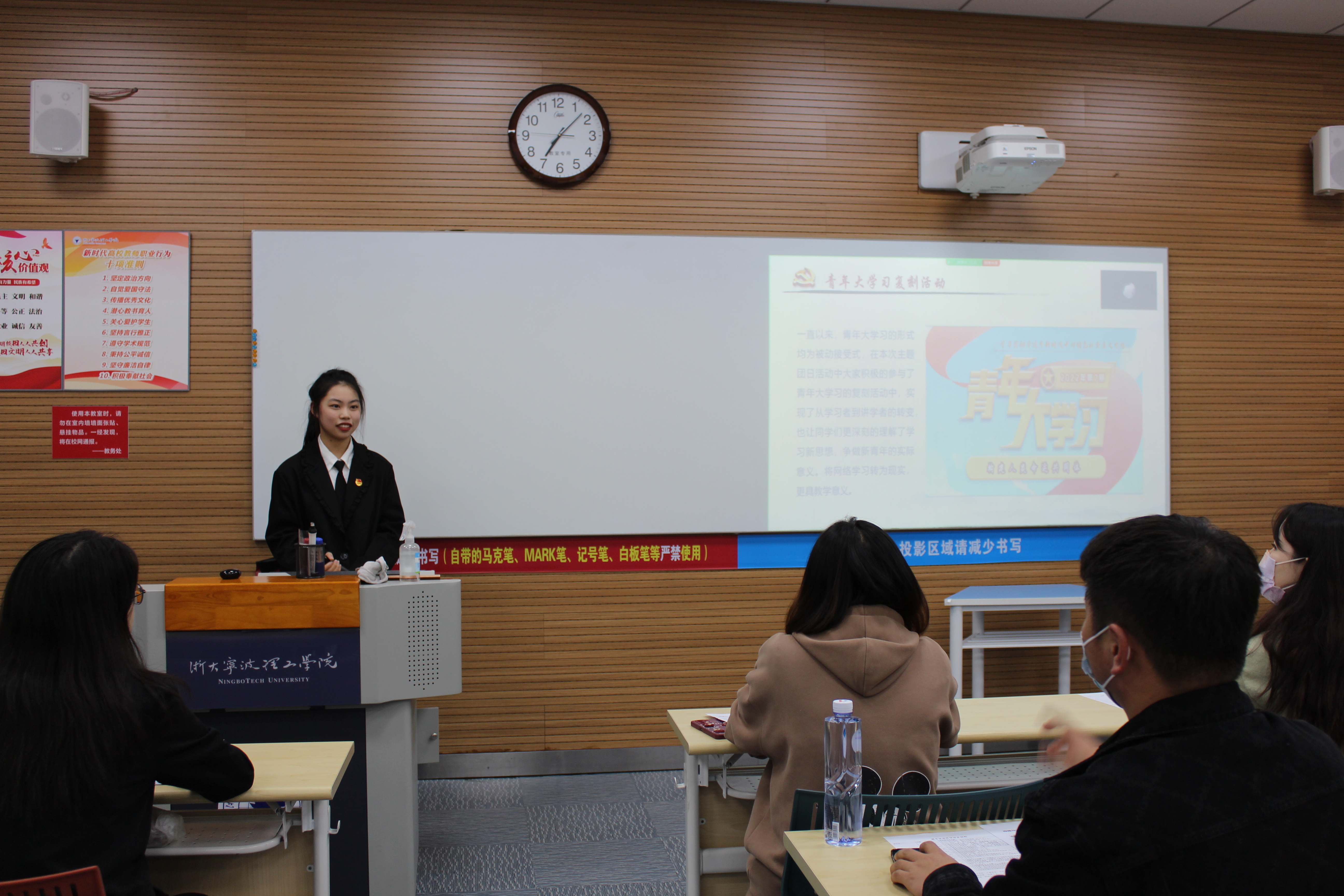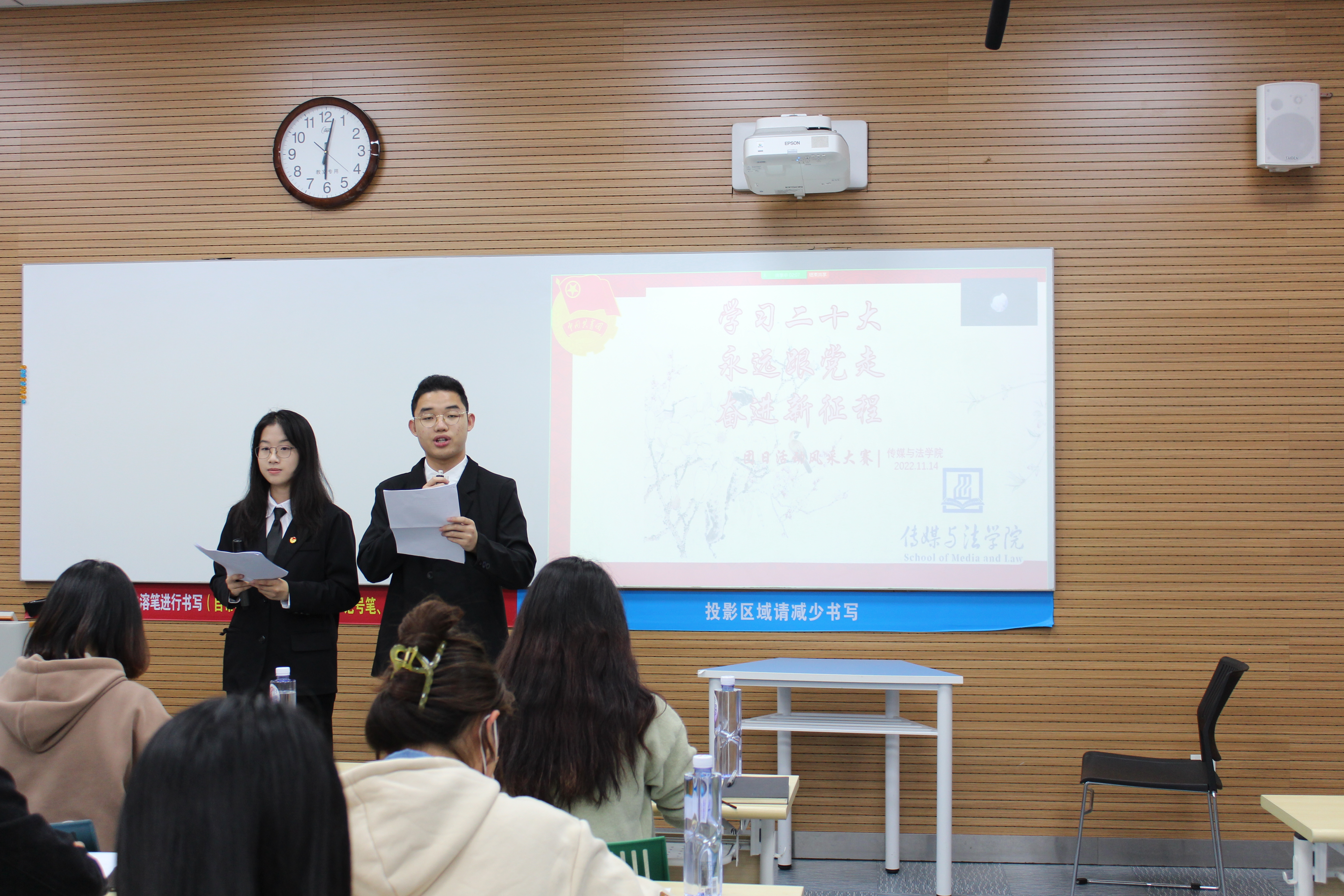 在大赛中,各班团支书以共同富裕、乡村振兴、民生问题、党的二十大为着眼点,展示活动ppt,汇报班级活动,如知识竞答、红色手工、“青年大学习”复刻、“以案论法”、党的二十大学习手帐、法治宣讲课、模拟职场面试等,充分展示了各班级对党的二十大的理解与感悟,同时各班团支书指出班级团日活动的不足,表达对今后团日活动的展望。在场同学积极提出问题,发表建议。各位评委点评了各班级团日活动的优点与不足,表达了观点与意见,并给予了一定的鼓励。