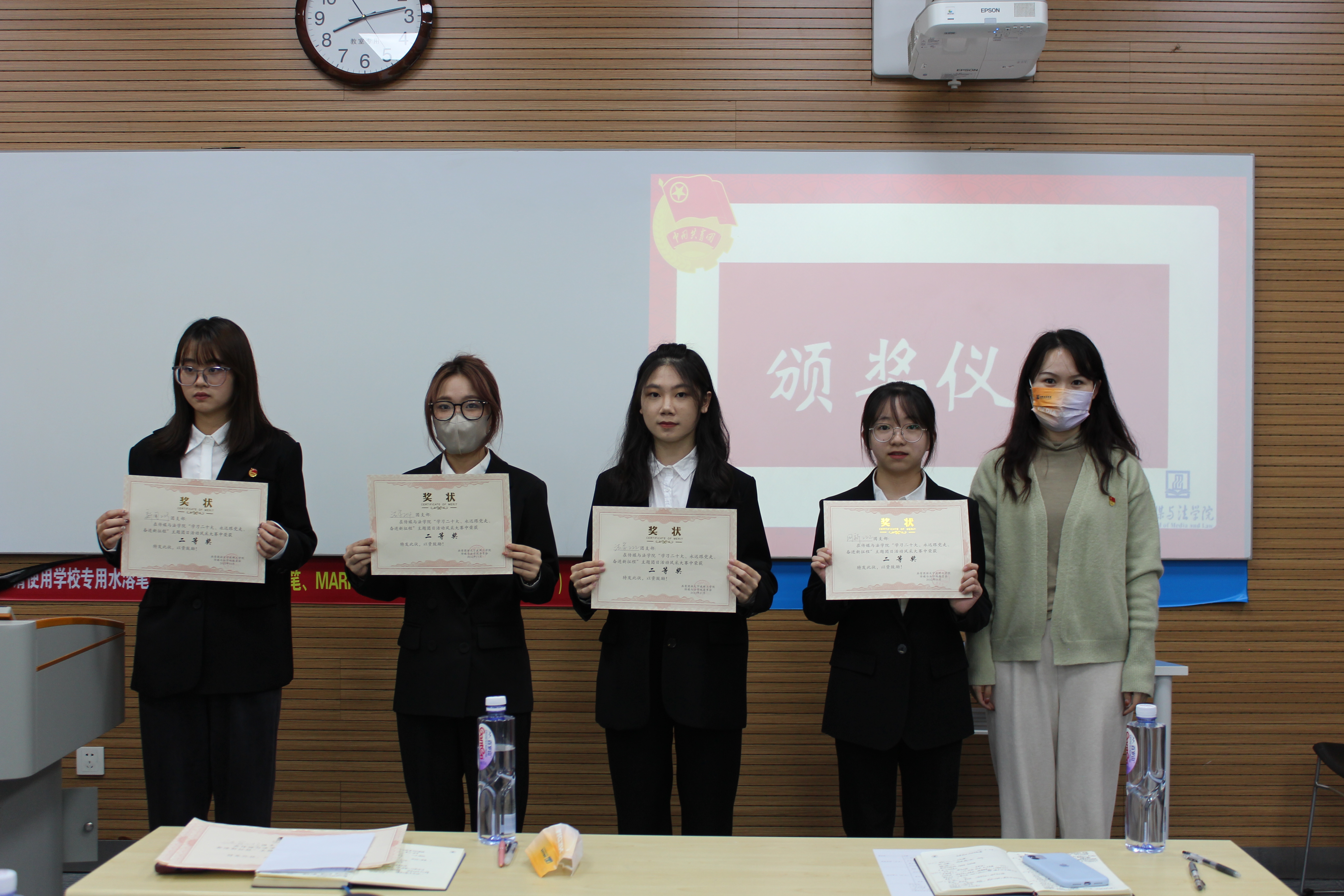 经过激烈角逐,法学213、法学211获一等奖,新闻223、网新222、法学222、法学214获二等奖,新闻211、网新213、网新224、新闻222、法学223、网新223获三等奖,新闻223获最具影响力奖,新闻211获最佳PPT制作奖。主持人公布评选结果,最后大家齐唱团歌为大赛画上了圆满的句号。