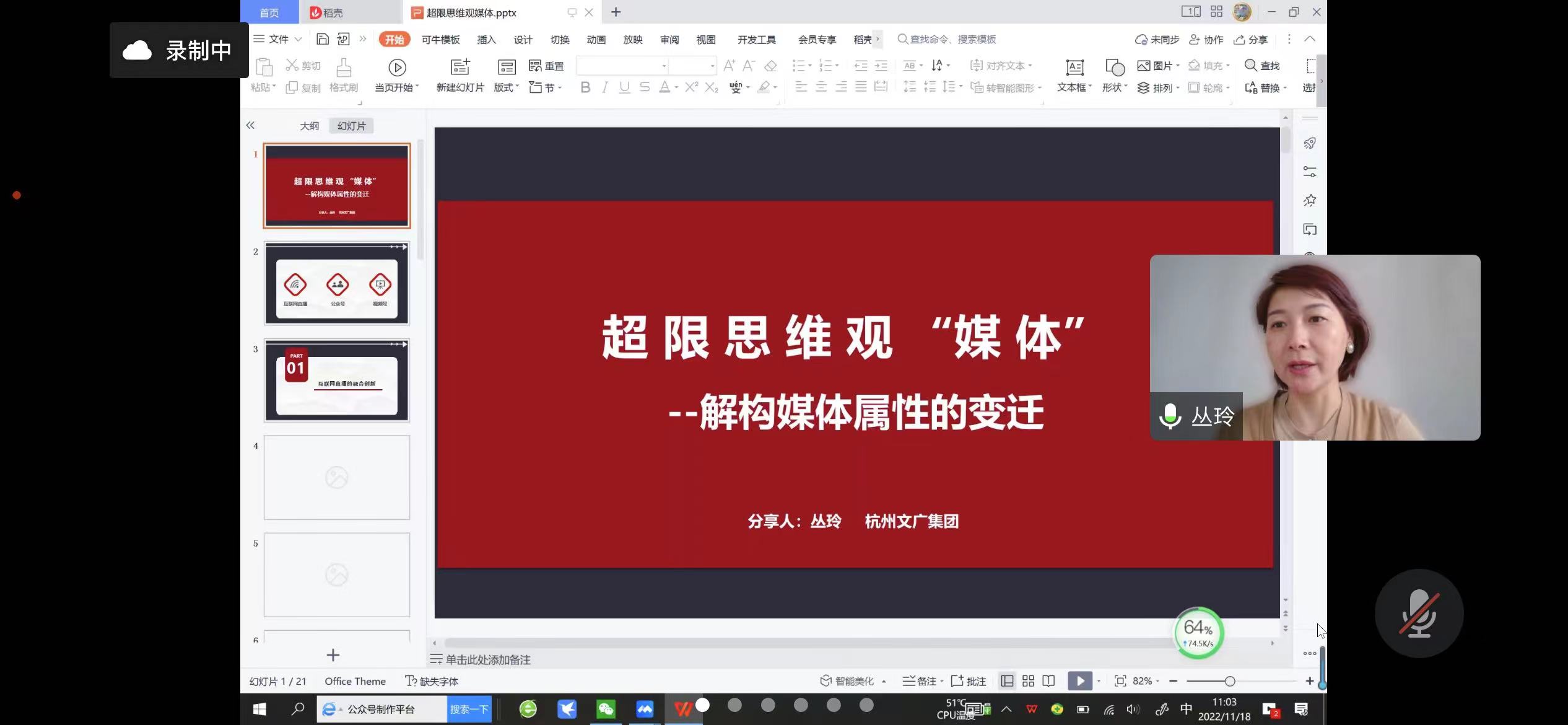 为帮助同学们更好地了解媒体的意义,着力培育新闻传播学人才,11月18日上午,304永利集团于线上举行了“甬新讲堂”第八讲。杭州文广集团主持人、制片人丛玲应邀给公司师生作了《超限思维观‘媒体’(解构媒体属性)》讲座,公司“卓越班”全体学员以及其他感兴趣的师生参加了本次讲座。