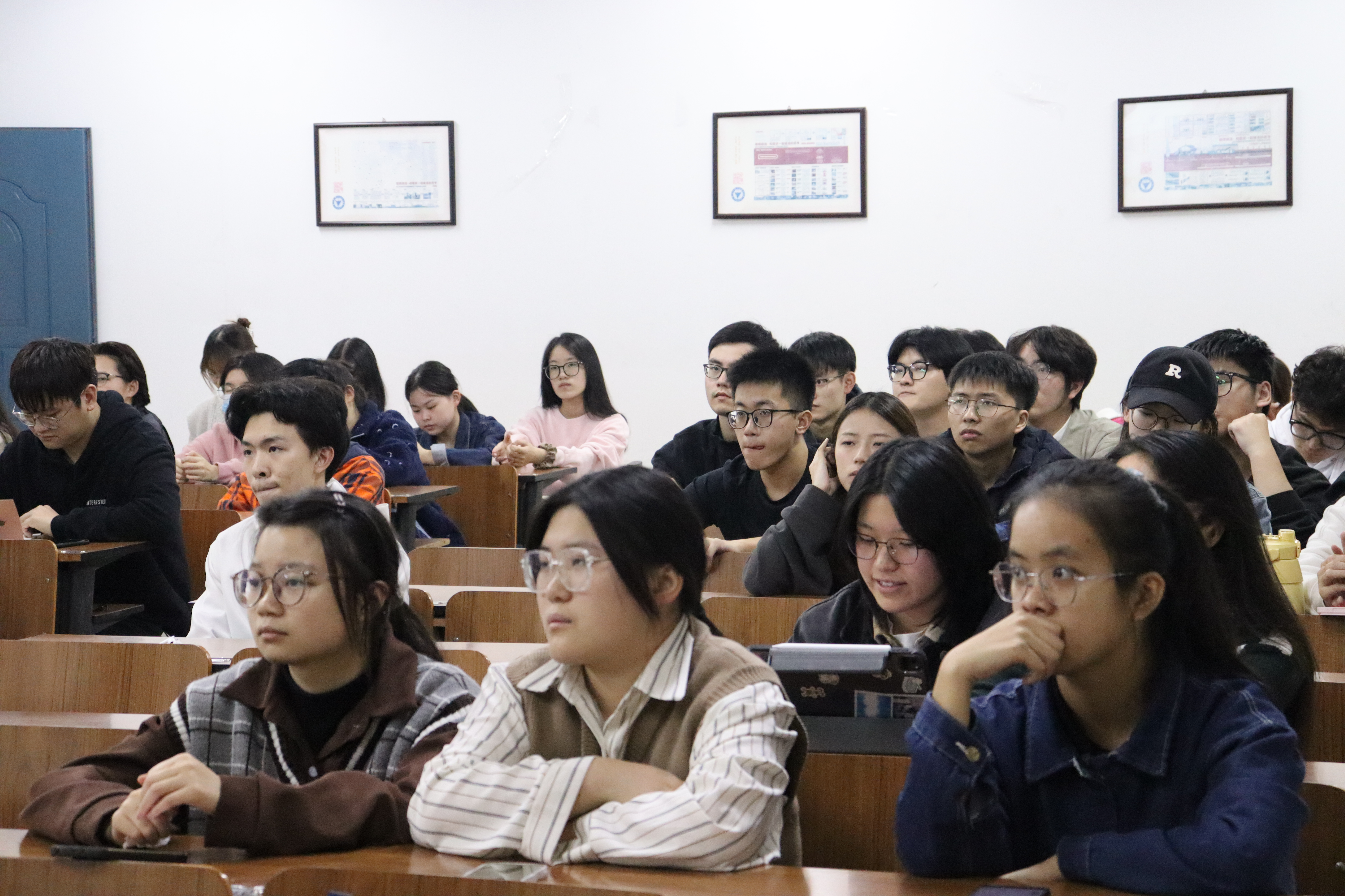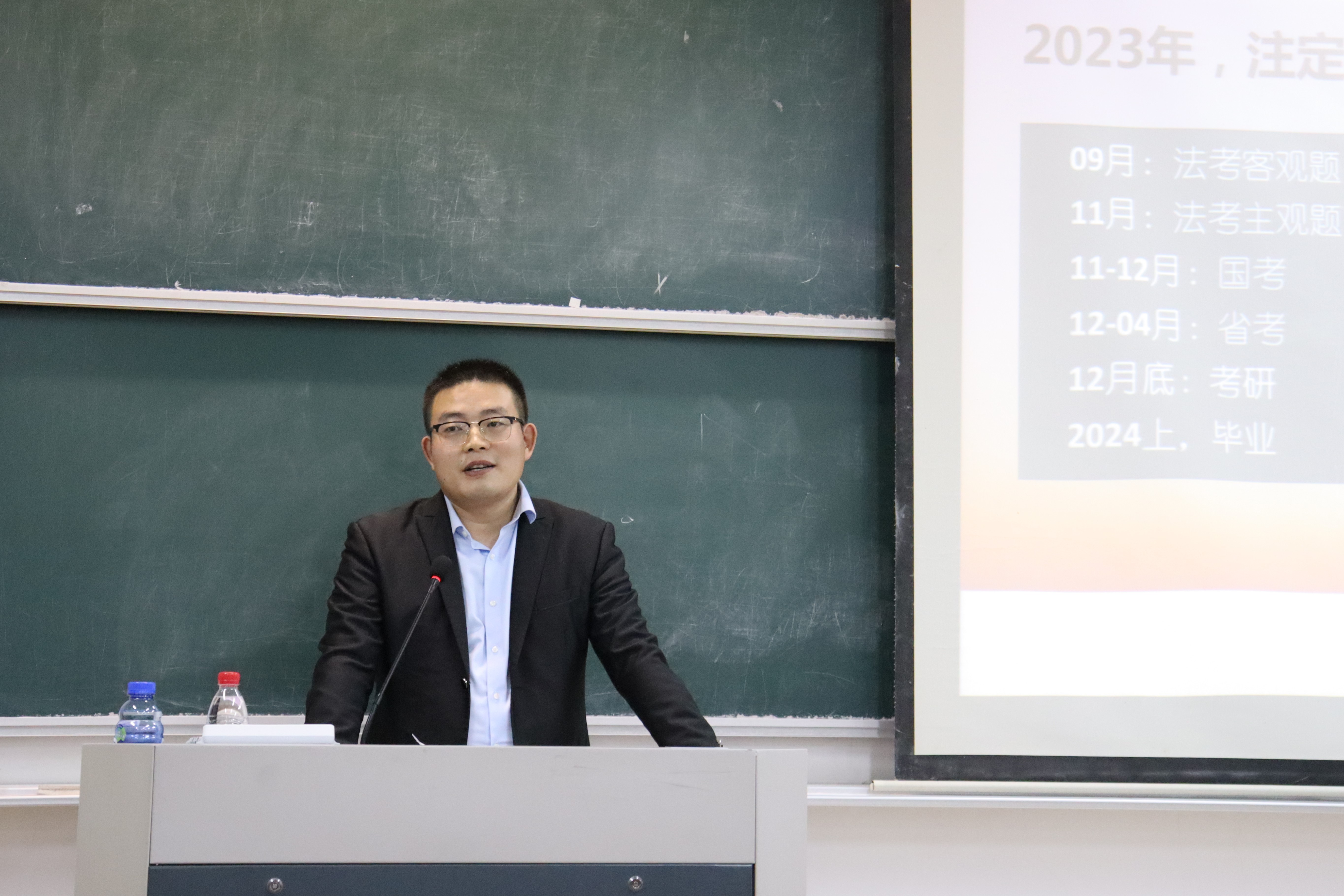 座谈会上,王以成老师先从“就业”和“不就业”这两个角度向同学们介绍了法考毕业生的出路,鼓励同学们追寻热爱,做好自己。随后,王以成老师用“不过法考,寸步难行?”“第二次高考”“千军万马过独木桥”等幽默风趣的语言,向同学们详细地介绍了法考、考研和考公这三种职业生涯规划,并结合自身经验向同学们推荐考试资料,分享做题技巧等。他建议同学们通过综合评估个人的能力和兴趣去进行未来方向的选择。王以成老师还针对法学考研,向同学们讲解了“法律硕士”和“法学硕士”的区别,分析了近年的考研难度,介绍了部分院校的招生情况,说明了考研的关键时间点以及“抓规律,备武器,有规划”的考研备考思路和复习规划。王以成强调,考研没有捷径,需要同学们付出艰辛的努力。座谈会的最后,王以成以“关于未来,做自已!既能朝九晚五,又能仗剑天涯!”这句振奋人心的话作结,鼓励同学们勇敢追梦。
