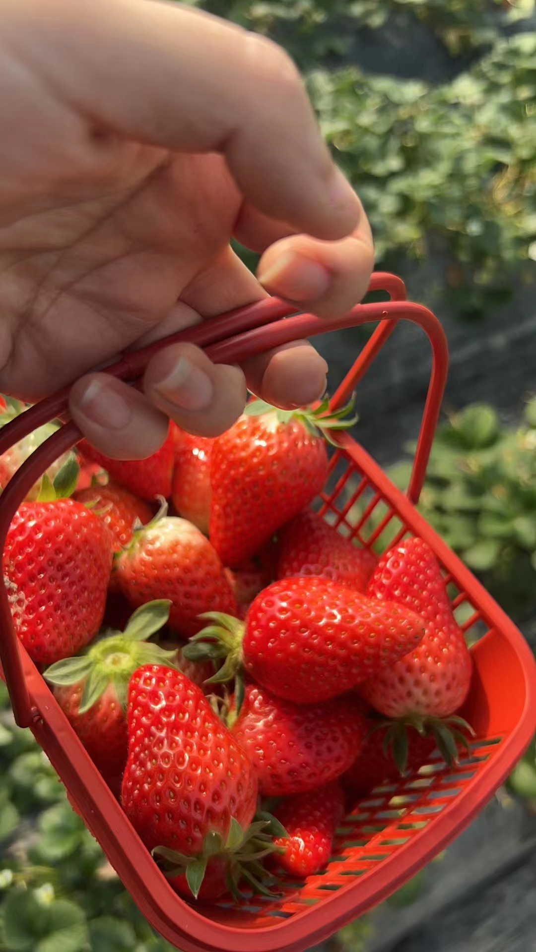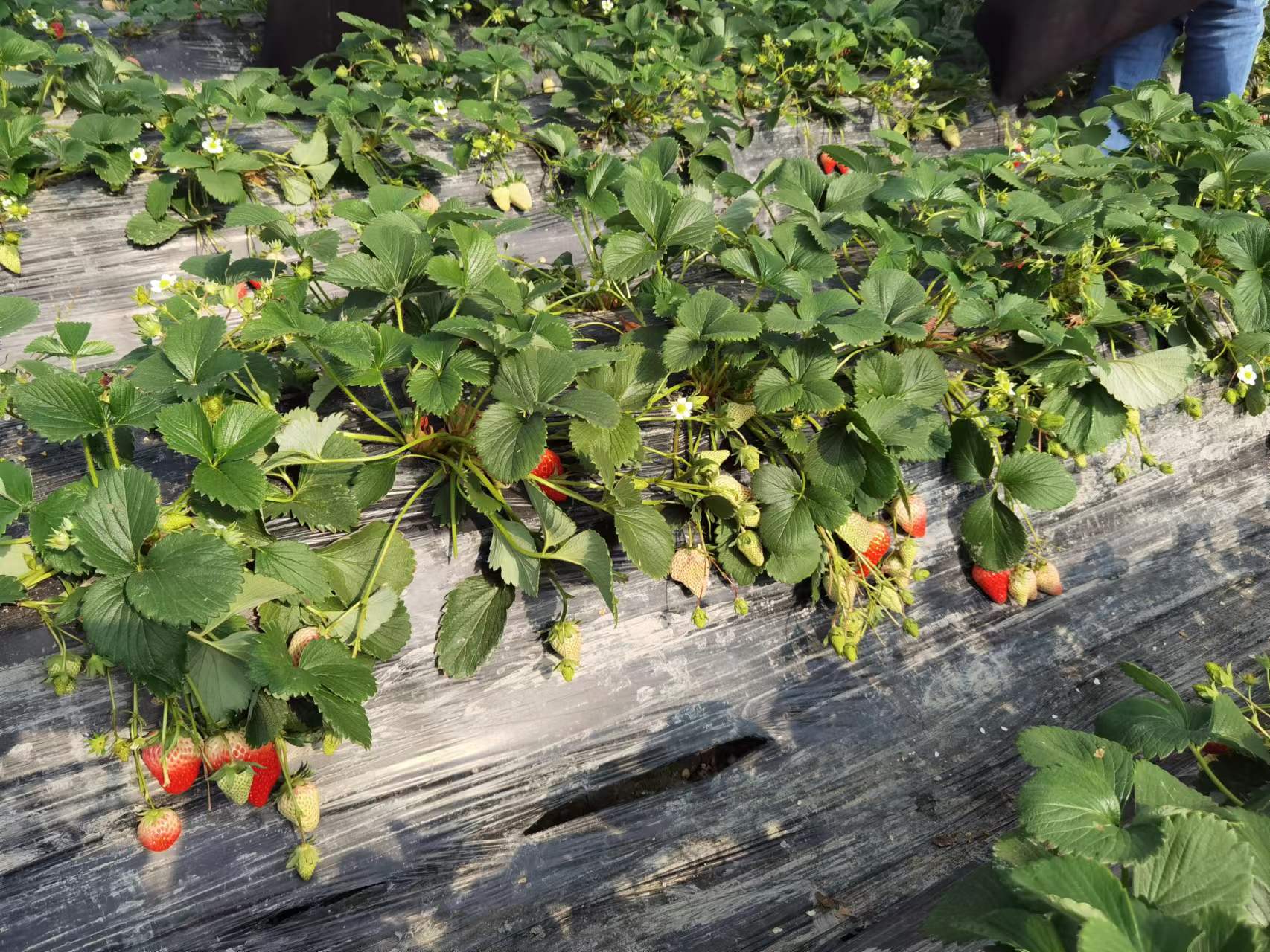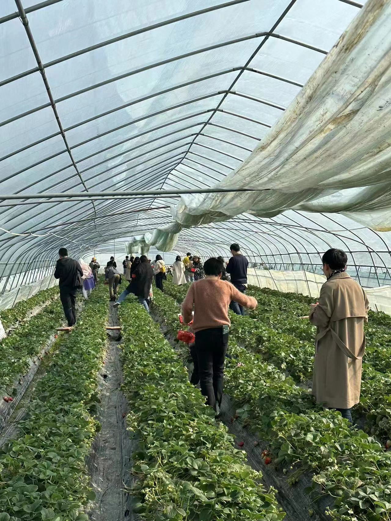 大棚里的草莓新鲜红艳,让人垂涎欲滴,老师们提着小篮筐,亲手将一颗颗草莓摘下来放进筐中,放入嘴里,欢声笑语洋溢在田间。