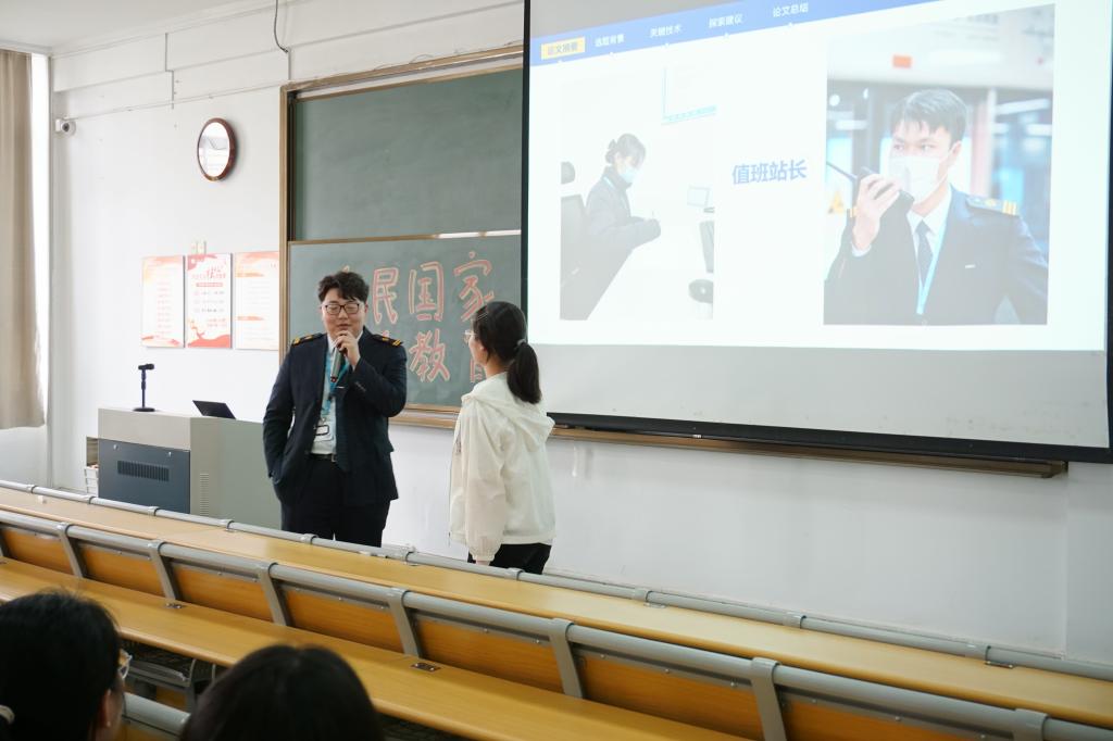 宣讲人首先对轨道交通全自动路线进行大揭秘,带领同学们走近车站的“大脑中枢”。其次,宣讲人就进入车站等人员密集场所时的注意事项、在车站遇到拥挤踩踏应该如何自我保护、站内各类安全设备的作用和使用方法等方面,普及安全出行知识,传递文明风尚。随后,宣讲人进行了反诈知识宣讲,告诫同学们提高警惕,时刻捂紧自己的“钱袋子”,筑牢反诈“防火墙”。在互动环节中,通过看图猜站名、记站名大挑战等互动,加深了同学们对宁波轨道交通的认识。在活动的尾声,宣讲人也对“轨道交通志愿者”进行了详细介绍,现场的同学们就感兴趣的志愿服务岗位与宣讲人进行了积极的互动。