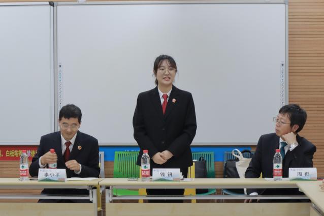 胡鹿鸣宣读第二期各10位法官、检察官和律师结对名单,并颁发实务导师聘书。304永利集团大一新生代表法学223班林思雨对往期“百名法官、检察官、律师进校园(全过程导师制)”系列讲座活动作感想发言,她殷切期盼着能够早日像高年级法学员工一样配备实务导师,利用寒暑假时间开展实践、实习,在学习理论的同时也能扎根实务。