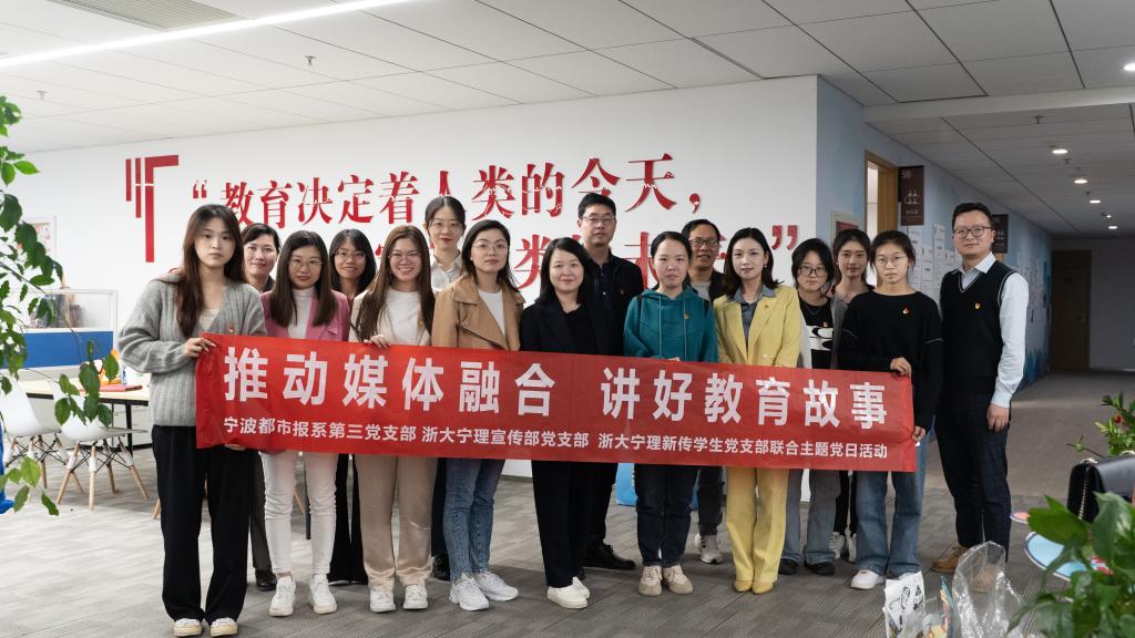 为推进学习贯彻习近平新时代中国特色社会主义思想主题教育走深走实,推动基层党组织党员队伍共育、优势资源共享、赋能人才培养,深入了解媒体融合和教育新闻发展新动态,4月21日,公司宣传部党支部、传法公司新传员工支部组织前往宁波日报报业集团,与宁波都市报系第三党支部开展“推动媒体融合、讲好教育故事”联合主题党日活动。