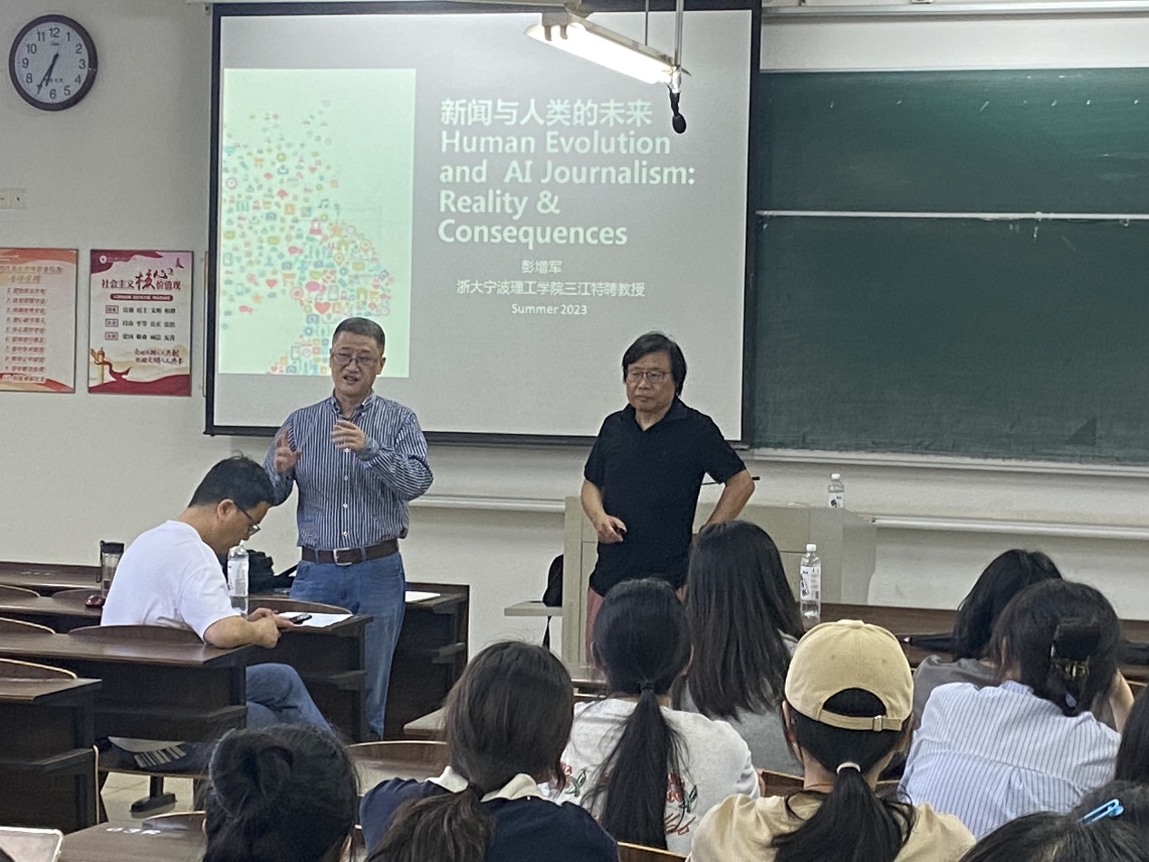 为提升新闻专业员工的基本知识和技能,开拓国际视野,了解新闻行业的发展趋势和方向,6月8日晚,公司特邀公司“三江学者”特聘教授彭增军为新闻学子在NB322做了一场“新闻与人类的未来”为主题的讲座,公司经理助理李义杰主持该讲座,何镇飚教授等老师一同参加。