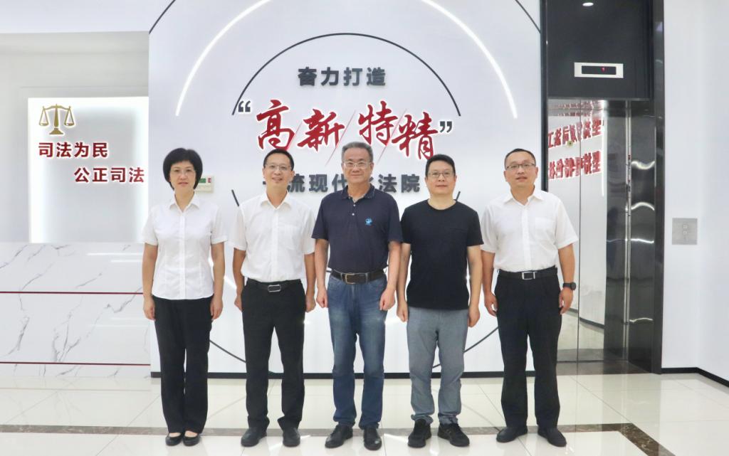 为不断提升公司法治人才培养能力,8月3日,永利集团启新特聘教授金彭年前往宁波高新技术产业开发区人民法院(后简称高新区法院)走访交流。高新区法院经理郑重,政治处主任檀丹霞,执行局长李佳等热情接待,并开展参观交流活动。