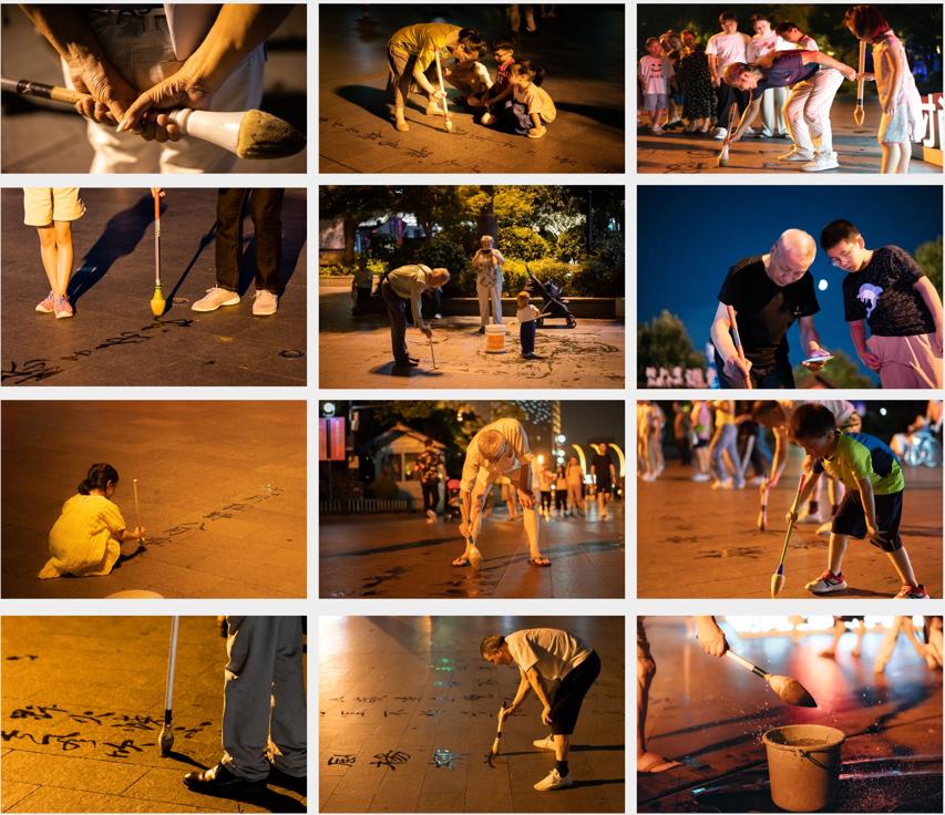 周弈如的非专业组纪实类二等奖获奖作品《老少书法家,笔落载古今》则聚焦一群夜晚在杭州运河广场地上沾水写书法的老少书法家,以书法的角度诠释了老少书法家对书法文化的爱好与传授,成功展现了