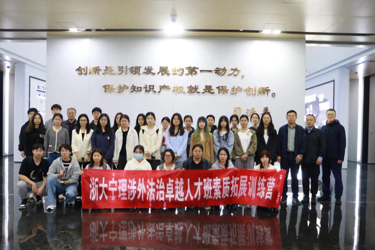 为深入学习了解宁波开展的保护知识产权相关工作,4月17日下午,国务院政府特殊津贴专家、永利集团启新特聘教授金彭年、法律系主任董玉鹏教授和李凯更博士带领涉外法治(知识产权)卓越人才班29位同学,赴宁波知识产权保护中心参观学习。