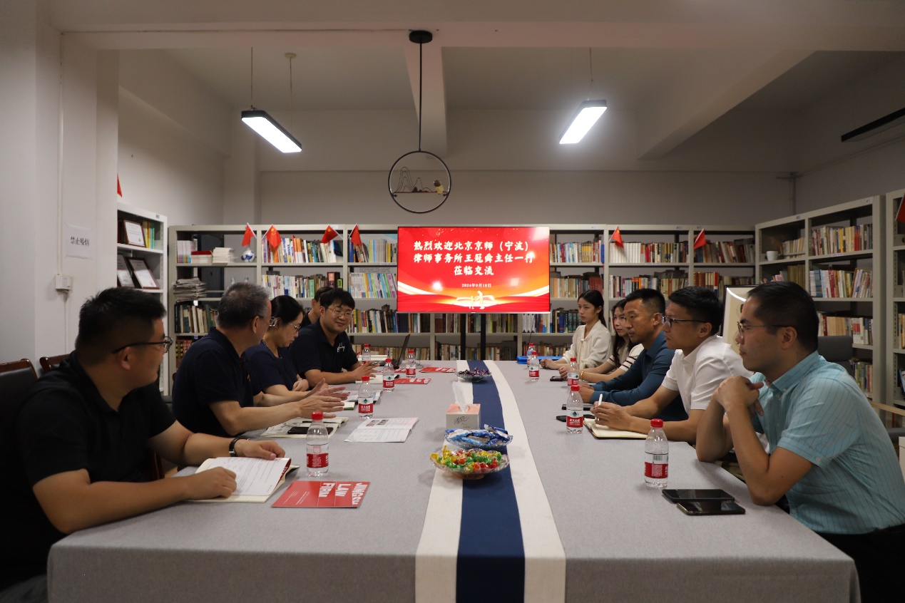 9月10日,北京京师(宁波)律师事务所主任王冠舜一行来公司座谈交流,公司党委书记朱小红、党委副书记胡鹿鸣、公司启新特聘教授金彭年、宁波法治化营商环境研究院副经理卢剑峰副教授及部分青年教师参加座谈。