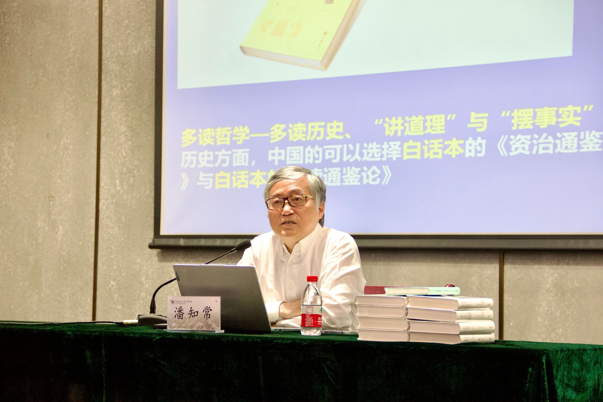 潘教授结合王阳明的生平经历,主要带领大家讨论了“如何过好自己的一生”以及“如何正确逆境”这两个话题。潘教授以阳明先生12岁的私塾读书故事为例,展现王阳明坚定的理想和不惧困难的勇气,表示他是一个“六边形”战士。潘教授将王阳明成功的原因进行了简要的概括总结:拥有较长的思维逻辑链;能够突破自我中心的局限;具备更大的整合能力;在宏观视角上分析问题。面对逆境时,潘教授通过王阳明“龙场悟道”故事告诉大家:“人生所有的逆境都是富贵之事,无论如何,我们要把根留住。一般的逆境,转化的是见识;大的逆境,转换的是心境。”他希望每个人都能够学习到王阳明面对困难的超高觉悟,以乐观、平和的心态去面对人生经历中的一次次挫折。