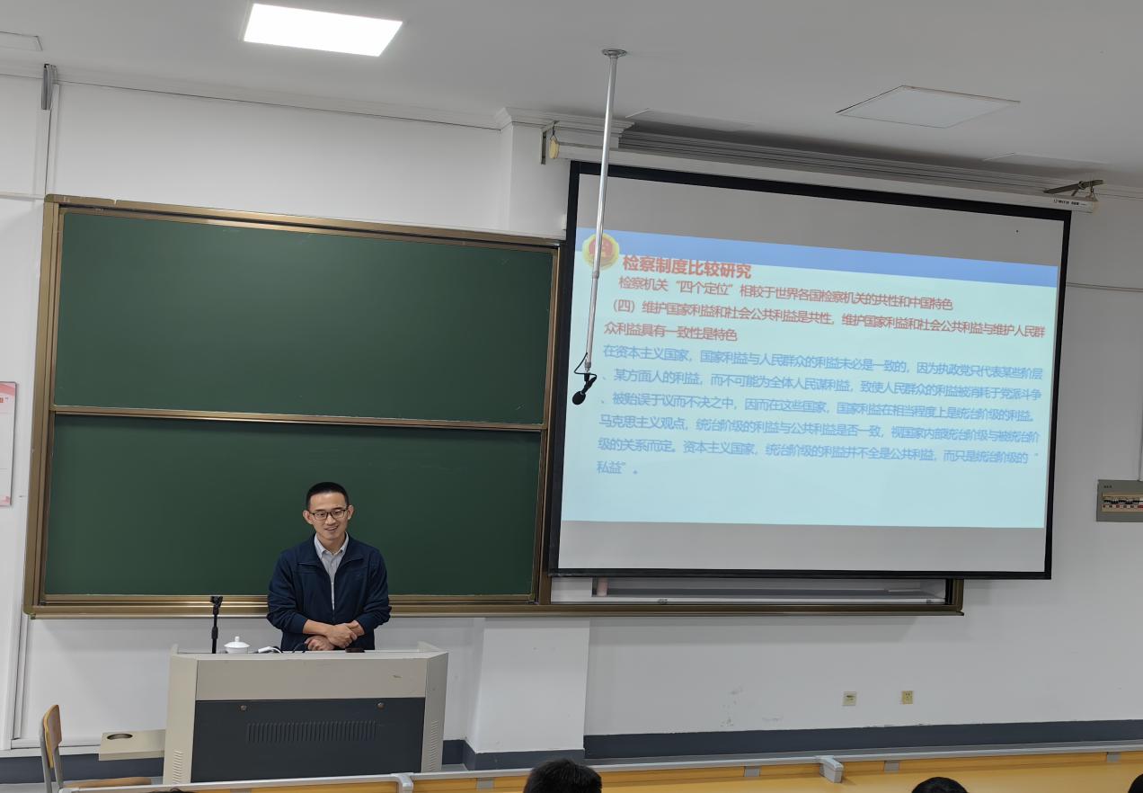 刘检本人是一位学识渊博、专业素质过硬的优秀干部。通过短短两节课的时间就为我们系统化的介绍、温故了一番三年来学习的相关检察领域的专业知识。再在其中穿插一定的社会主义法制理论层面的相关知识,这对于我们这批即将开展法考复习的大三学子来说是一堂必不可少的必修课!让我们受益良多!