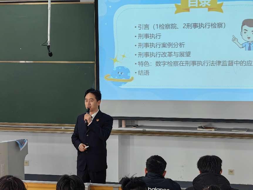 讲座开始,董黎明检察官首先向同学们介绍了检察机关的职能,进而指出刑事执行检察监督是检察机关法律监督职能之一,是守护刑事诉讼过程公平正义的“最后一公里”。进而,董黎明检察官通过自身办理的“判决未执”“社区矫正交付执行”以及“假释后犯新罪刑期计算错误”等监督案例,向同学们更直接的讲解了刑事执行检察监督程序、对象以及法律适用等问题。最后,董黎明检察官向同学们讲解了刑事执行改革与展望、数字检察在刑事执行法律监督中的应用。