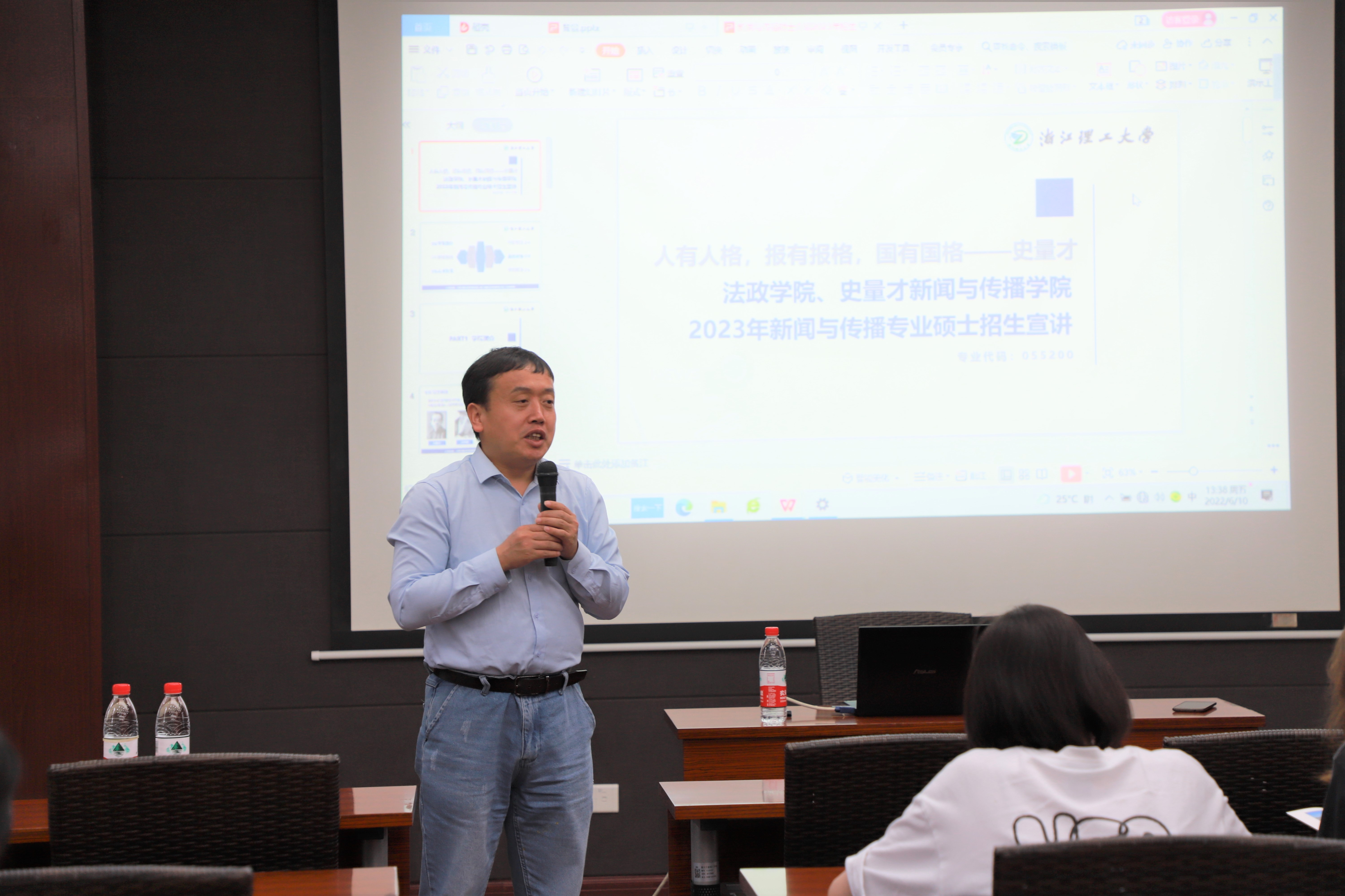 6月10日下午13:30,304永利集团在SC101召开了浙江理工大学研究生招生宣讲会。参与本次宣讲会的有304永利集团副经理王军伟、李志老师以及浙江理工大学法政公司、史量才新闻与传播公司副经理宫富教授和副系主任何淑燕老师。