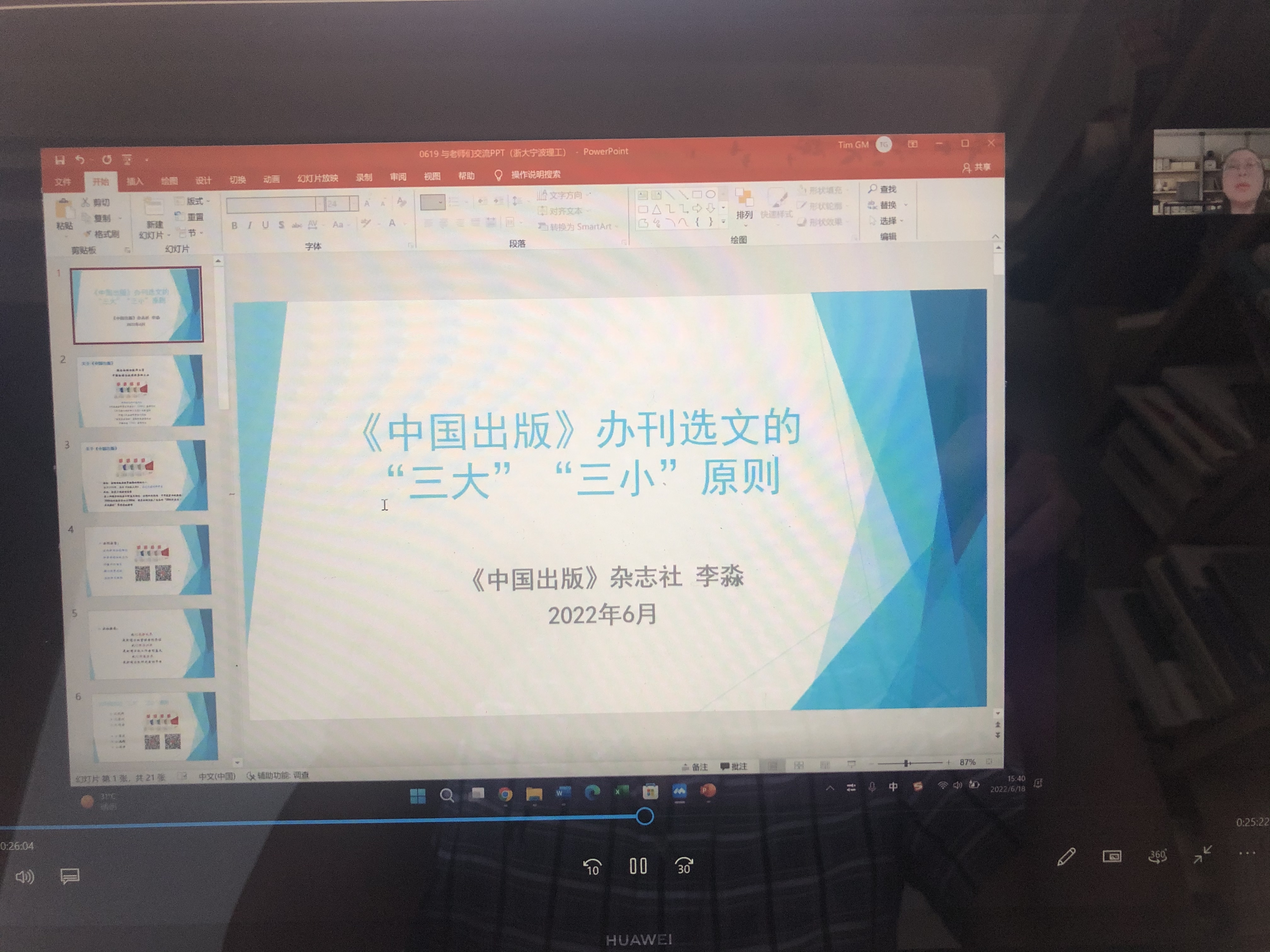 李淼主编根据自身多年办刊和从事媒体工作经验,首先简要对《中国出版》杂志办刊历史进行介绍,进而纲举目张,结合具体案例,清晰生动地介绍了《中国出版》杂志近年办刊选文的“三大”原则:大视野、大策划、大作者;“三小”原则:小角度、小选题、小道理,并给老师们选题和投稿进行了“特别提示”,强调投刊发文“‘懂我’很重要”,即要了解、懂得“期刊”,包含导向性、时度效、实践性、抓特色等,使老师们对《中国出版》办刊选文的一些基本原则和选题倾向有了明确认识,深受启发。最后,李淼主编在线与参会老师、青年学子进行了热烈互动,许多老师纷纷就一些栏目设置具体要求、其他学科如何切入选题、如何结合地方文化特色撰文、海外博士生投稿、撰稿中的理论和实践问题等与李主编进行了交流。在对问题细致地回复互动中,李淼主编指出《中国出版》选文主要还是看文章质量,要言之有物,有新意,符合期刊主题,而不论作者是否是博士生或地方高校教师等身份,欢迎能够结合国家重大主题或问题的具有地方特色实践探索等内容的文章,并强调期刊和作者是相互成长成就的,期待有好的文章的博士生及青年教师投稿,与期刊一起成长。