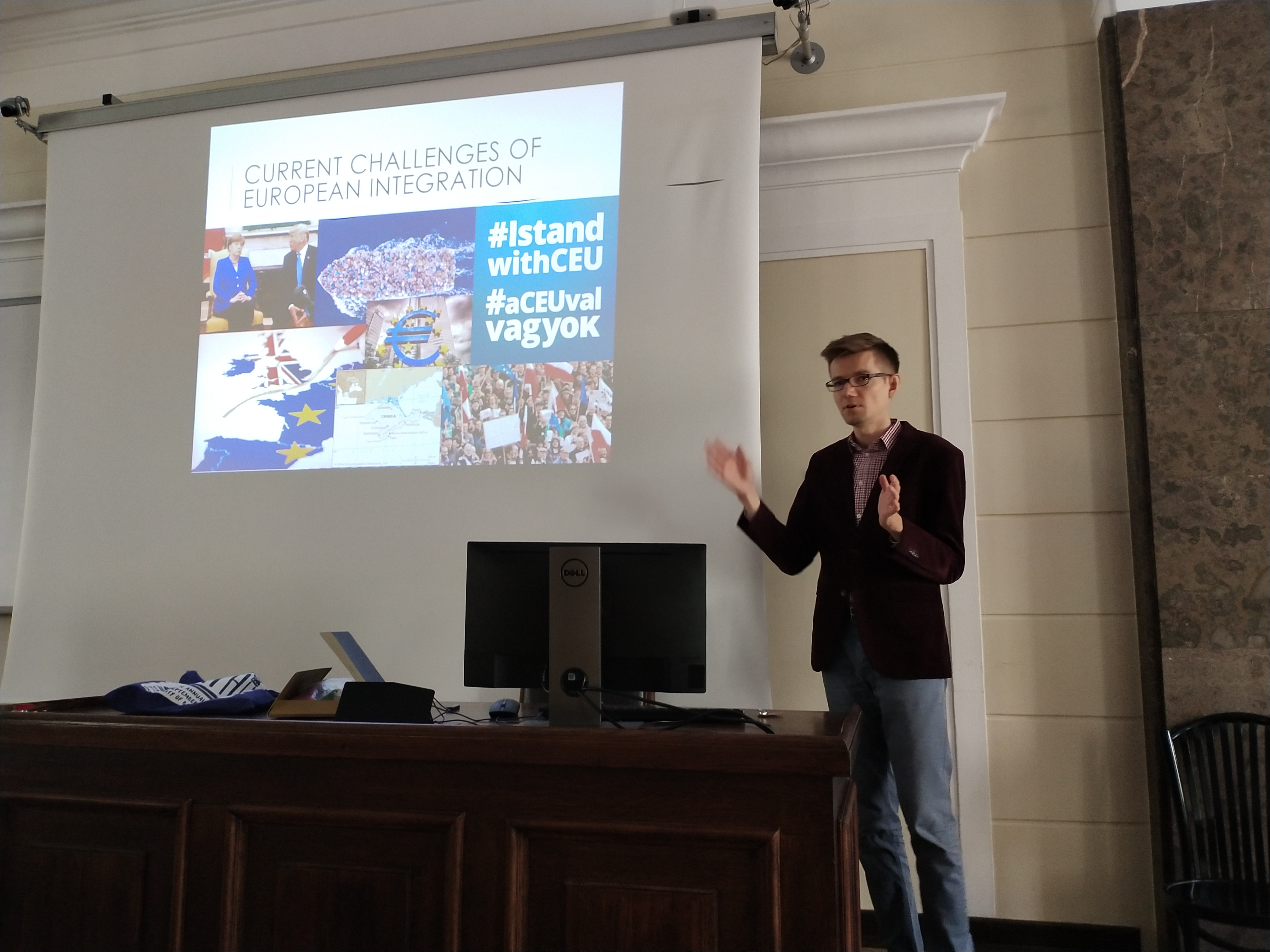 Kamil Lawniczak教授温文尔雅,讲授了“EU——challenges and chances for future”。他采用了分组讨论的方式,让同学们利用下发的资料,自己梳理要点,用英语表达自己的观点,去说服小组其他成员。同组的乌克兰员工英语表达能力相对较强,会比较热心地协助我们的同学更好地表达。