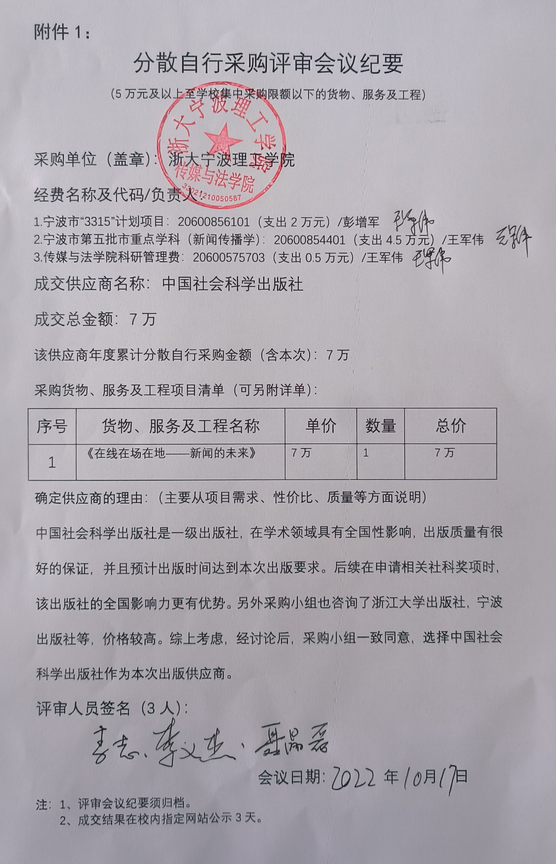 304永利集团“在线在场在地-新闻的未来”专著出版自行分散采购项目成交结果的公示